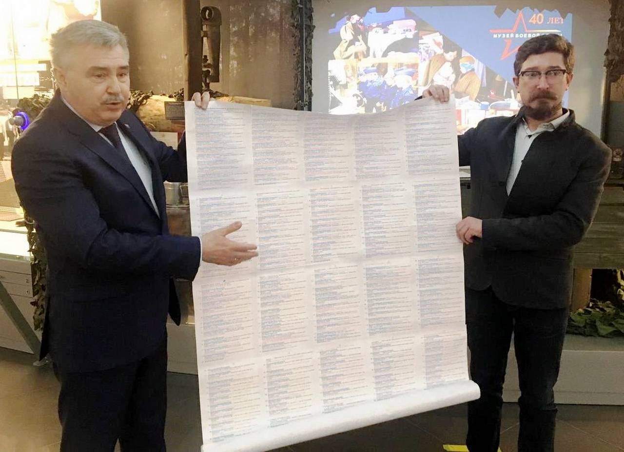 Список был передан руководителю регионального отделения РВИО Анатолию Каширину в июне 2021 года у Вечного огня в Туле в рамках акции "Международный автопробег вахты Памяти "Горсть земли".