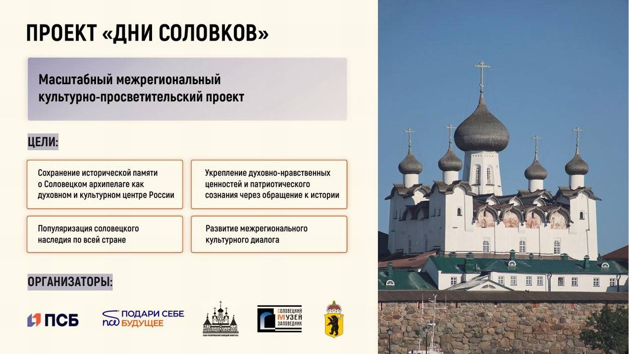 Жители Ярославля могут увидеть знаменитый архипелаг, не покидая областной столицы. На Первомайском бульваре открылась выставка, посвящённая культурно-историческому и духовному наследию сердца русского севера. Экспозиция стала открытием проекта «Дни Соловков в Ярославле", который продлится до 12-го июня. События пройдут в соответствии с Указом Президента Россия Владимира Путина о праздновании 600-летия основания первого монашеского поселения на Соловецком архипелаге.