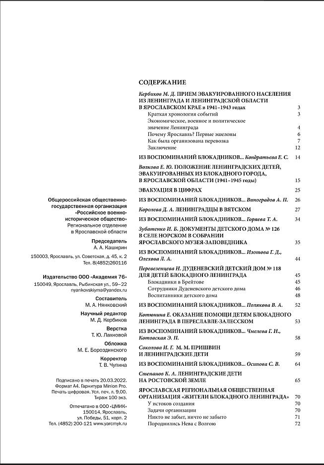 "Очередной выпуск альманаха ЯРО РВИО посвящен судьбам детей блокадного Ленинграда, эвакуированных в годы войны в города и села Ярославской области, ярославцам, взявшим на себя заботу о маленьких ленинградцах, детским домам, ставшим для них новой семьей. - отметил Михаил Нянковский. - В состав альманаха вошли как некогда опубликованные, так и никогда не публиковавшиеся материалы авторитетных историков, сотрудников ярославских музеев, архивистов и педагогов, а также (это впервые на страницах наших альманахов) исследовательские работы школьников — участников Всероссийского туристско-краеведческого движения «Отечество». А это значит, что и совсем юное поколение приняло из рук старших эстафету памяти".