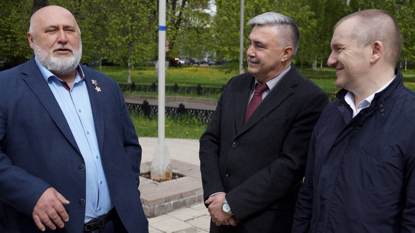 Прямо с вокзала Алексей Викторович поехал на встречу с ярославскими общественниками, ветеранами ВДВ к комплексу "Никто, кроме нас".