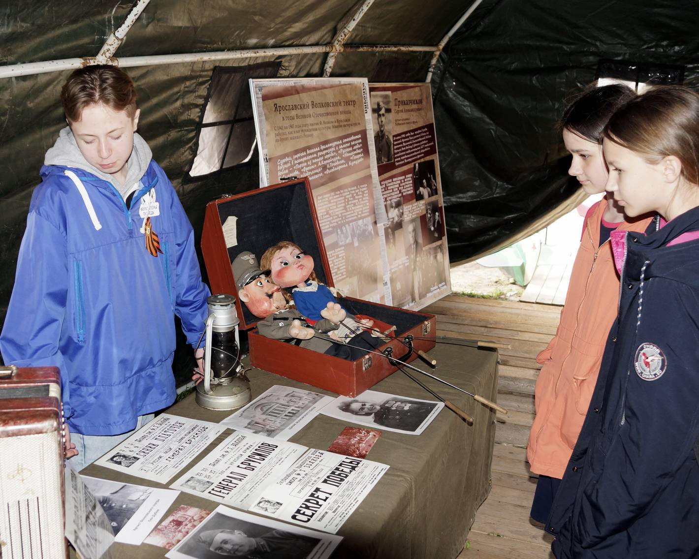 - Экспозиция «Образование и культура», где посетители знакомились с деятельностью высших учебных заведений Ярославской области, государственного академического театра им. Ф. Волкова и Рыбинского театра кукол в военное время.