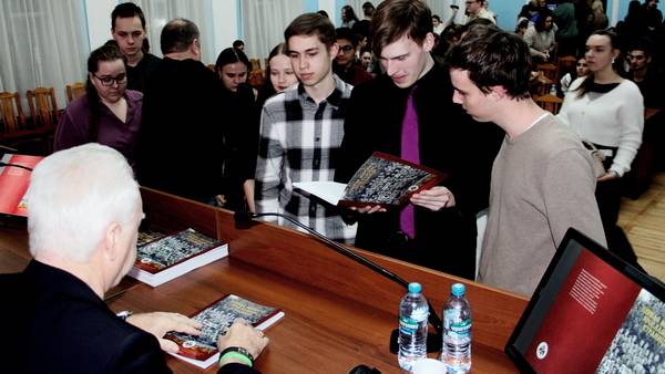Уважение и любовь к истории Анатолия Ивановича широко известна. Поводом для сегодняшней встречи стал выход Альманаха, подготовленного по его инициативе. Тема Альманаха: «Первая мировая. Ярославские страницы». За автографами на новой книге выстроилась целая очередь будущих учителей истории. И, конечно, фото для домашних архивов.