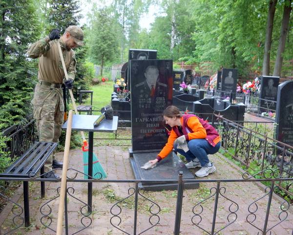 Благоустройство могил Героев Советского Союза, полных кавалеров ордена Славы и Героев России на этой неделе прошло на Военном мемориальном и Чурилковском кладбищах и на кладбище села Туношна.