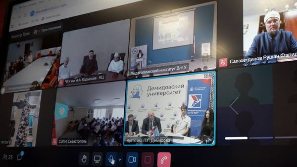 ИАЯ: 43 участника подключились и были на связи онлайн. География участников довольно широкая: Владимирская, Херсонская, Ярославская, Костромская области, Чеченская Республика, Севастополь и другие. В Ярославле организатором телемоста стал Координационный центр профилактики терроризма ЯрГУ им. П.Г. Демидова.