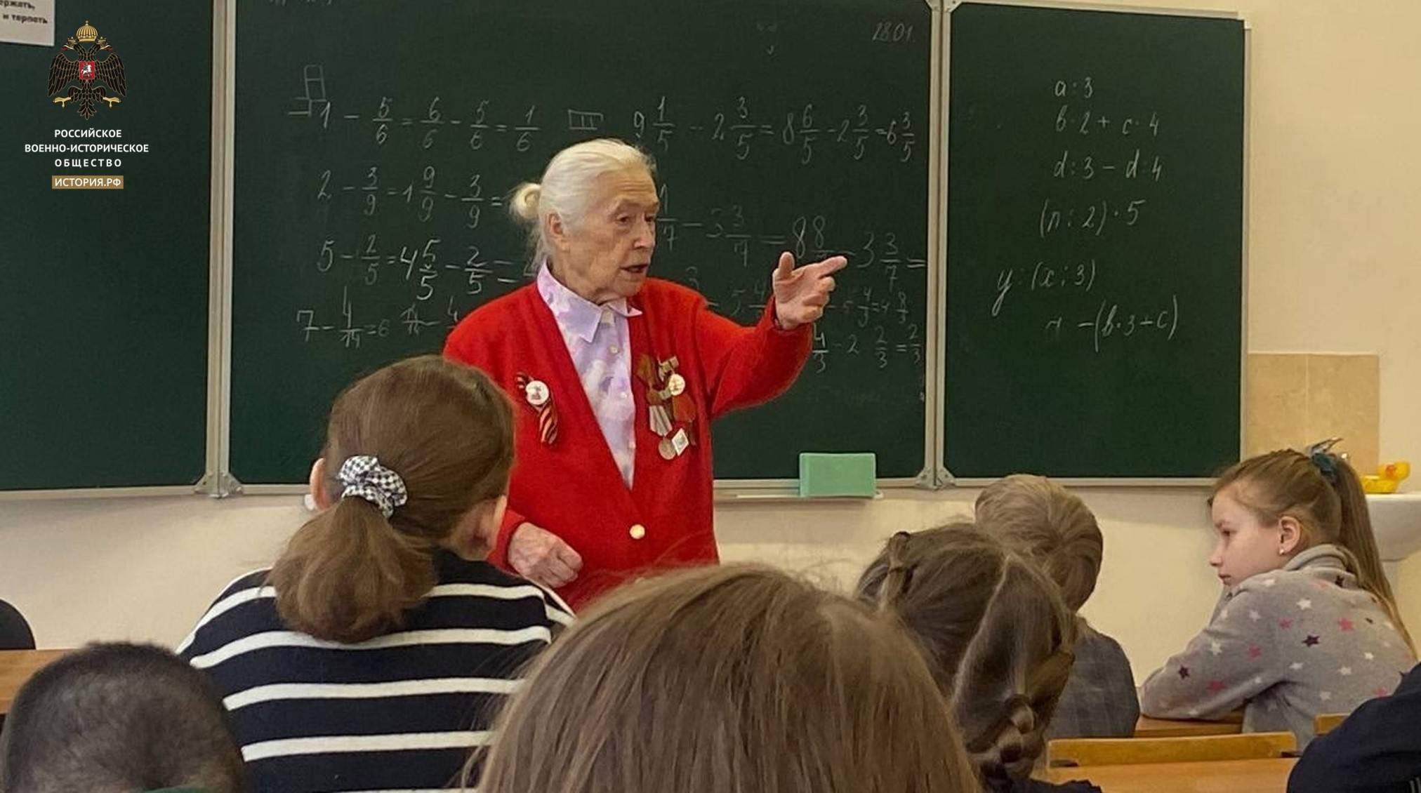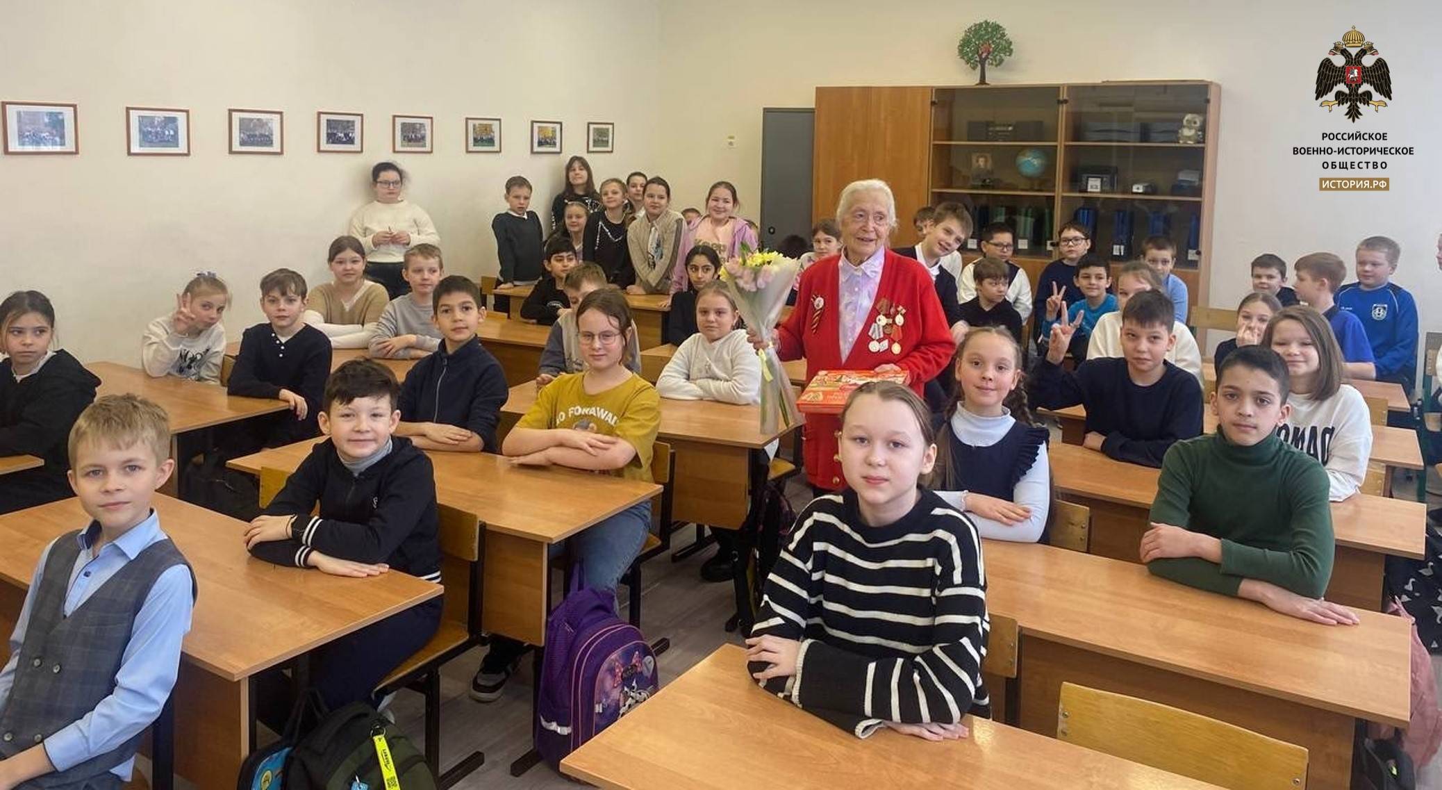 Член ЯРО РВИО Фуад Гасымов в Центре образования - школе № 55 города Ярославля организовал встречу учеников 3«Б» и 4«Б» классов и ветерана, мудрой и доблестной женщины – Шадриной Анны Владимировны.