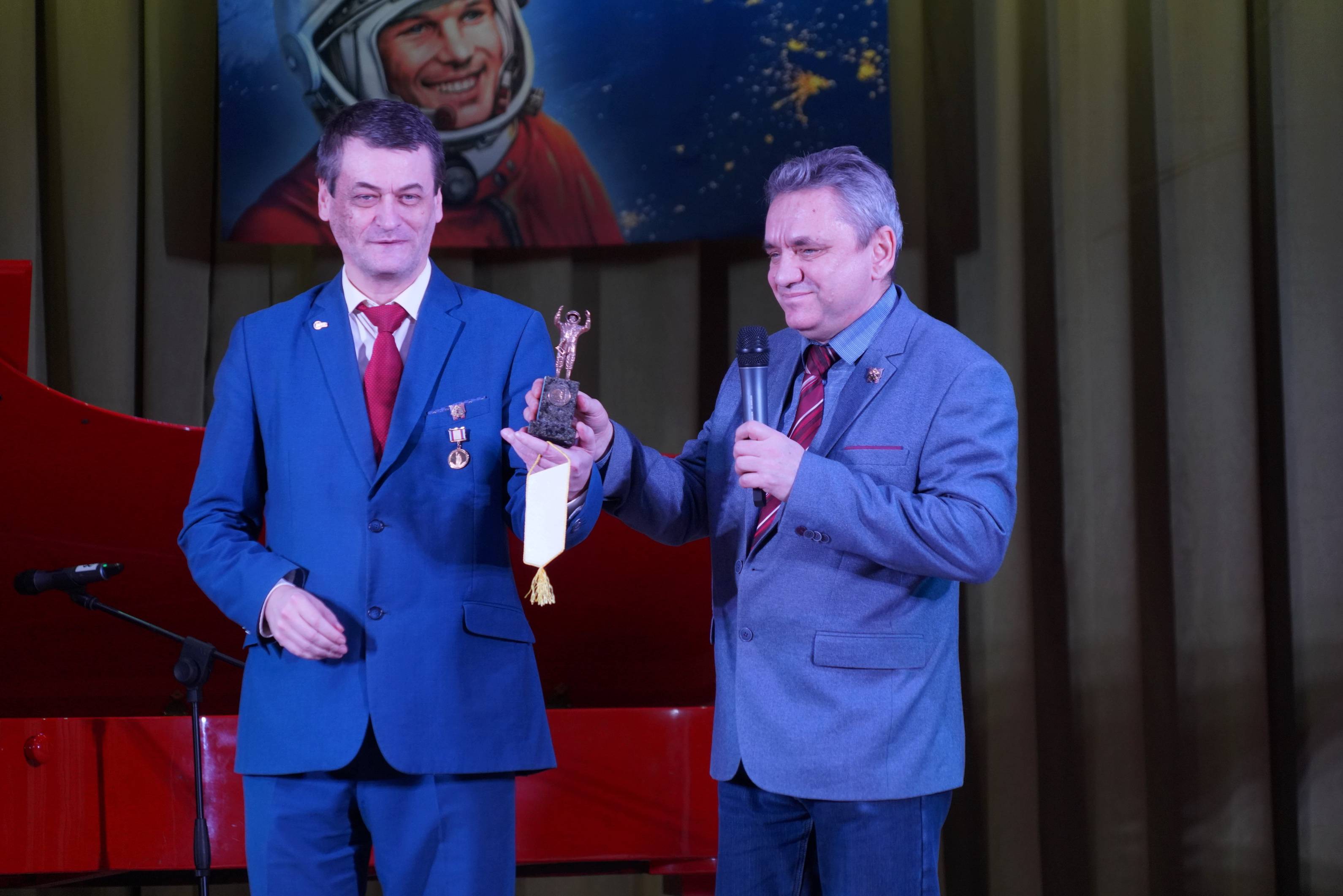 Объединением военно-исторической миниатюры Московского отделения РВИО к конкурсу был учрежден специальный приз для награждения лучшего коллектива или солиста в виде бронзовой миниатюрной фигуры первого космонавта Ю.А.Гагарина. Представил приз и рассказал о проекте "Мост в космос", реализуемом Московским отделением РВИО, руководитель объединения военно-исторической миниатюры и член совета Московского отделения РВИО Юрий Алексеев.