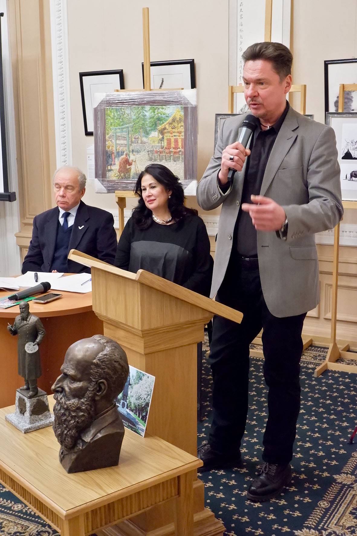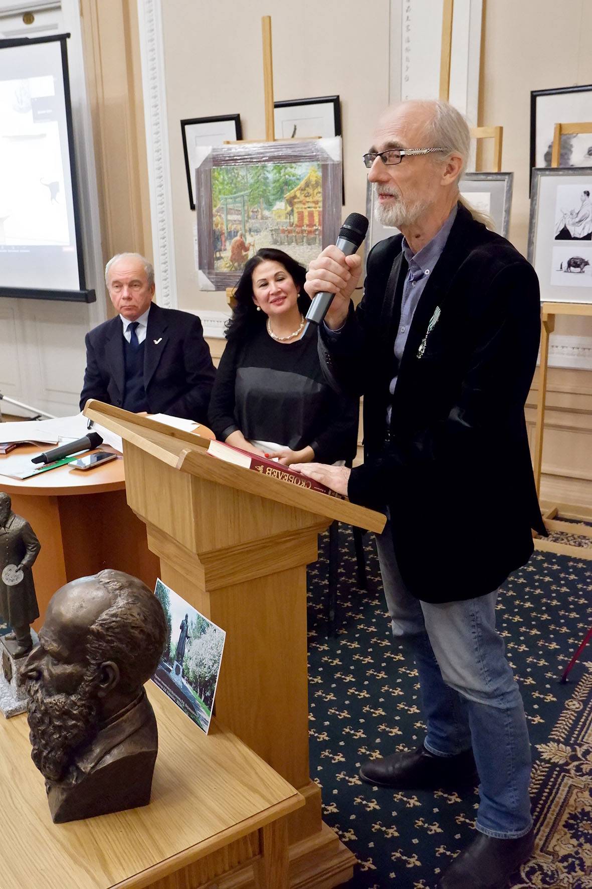 В ходе круглого стола участники могли видеть различные батальные и живописные работы Василия Васильевича, а также макет памятника художнику.