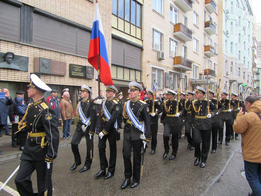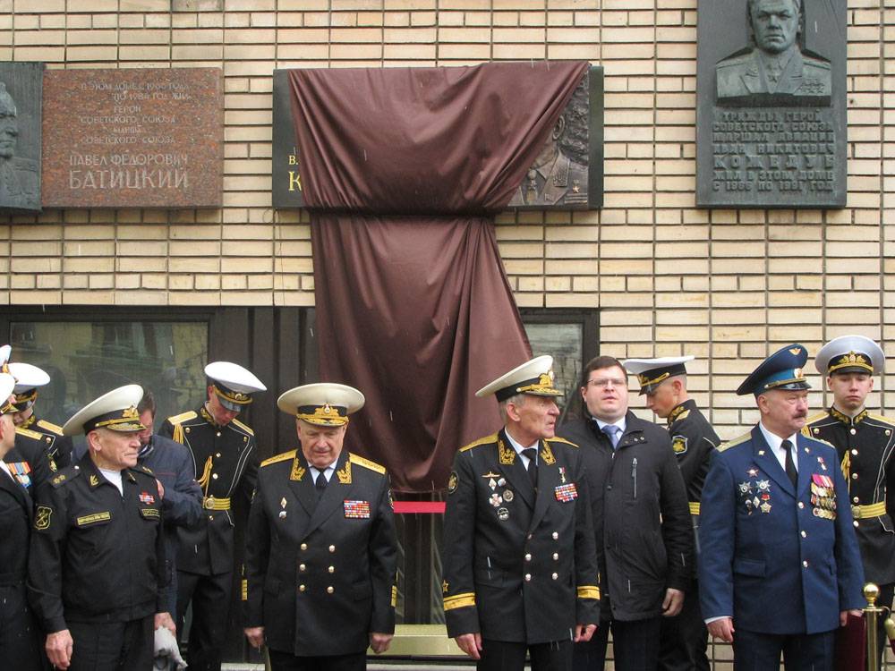 Памятную доску открыли сын В.А. Касатонова адмирал Игорь Владимирович Касатонов и заместитель Главнокомандующего Военно-морским флотом Российской Федерации вице-адмирал Владимир Львович Касатонов.