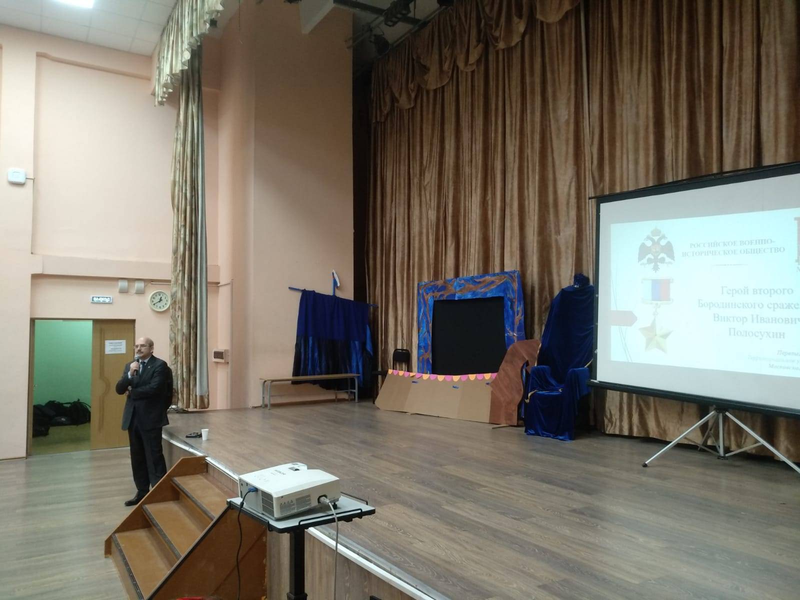 17 февраля в школе № 1288 имени Героя Советского Союза Надежды Викторовны Троян (Северный АО Москвы) руководитель научно-просветительской секции Московского отделения РВИО Сергей Перелыгин прочитал лекцию учащимся 7-8 классов.
