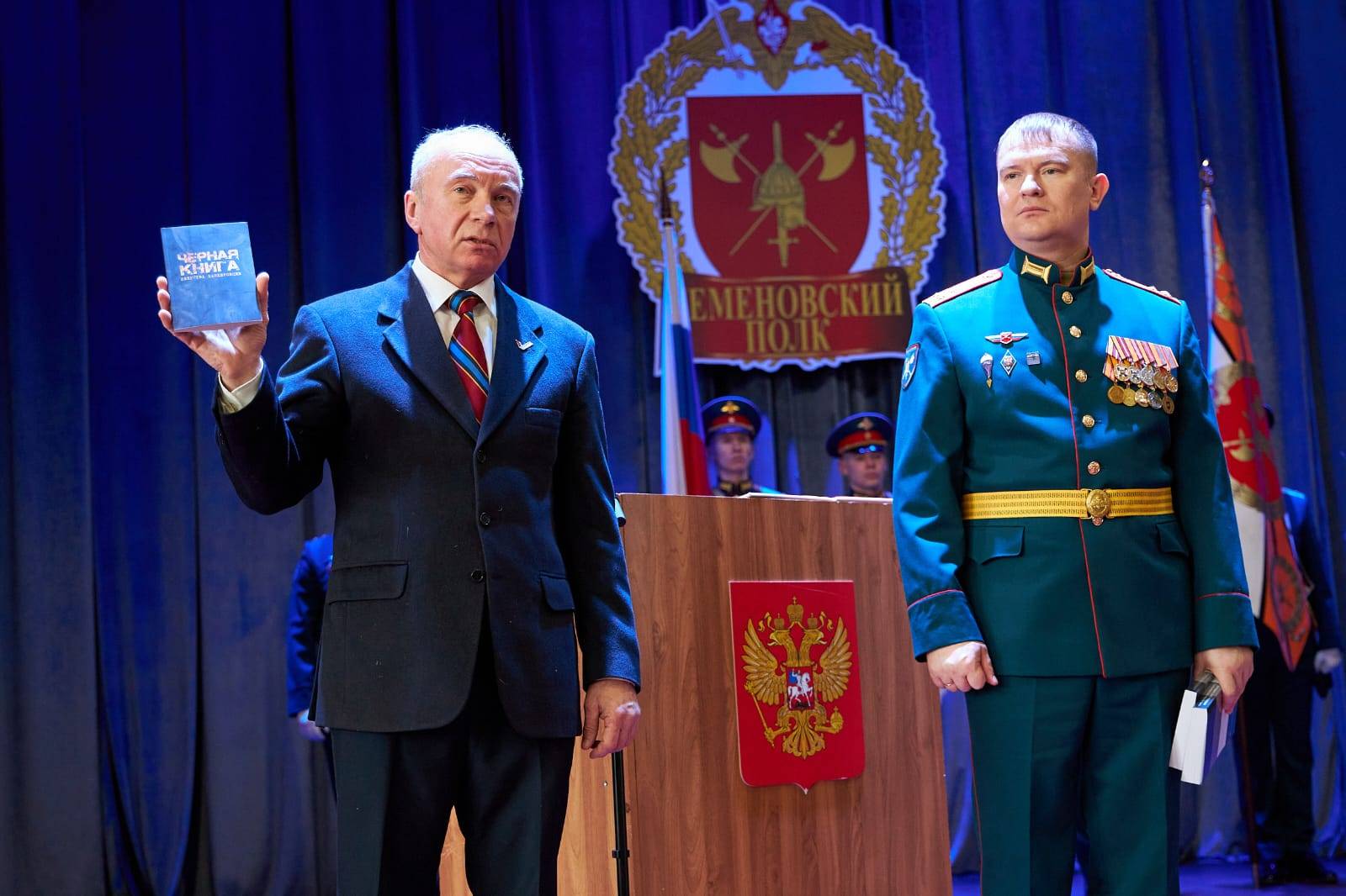Командир Первого отдельного стрелкового Семёновского полка полковник Александр Юрьевич Черепанов совместно с ветеранами части (Семёновский полк создан на основе 1-й отдельной стрелковой бригады охраны) и гостями возложили цветы и приняли участие в торжественном заседании, во время которого состоялось вручение боевых наград военнослужащим части, выполнявшим воинский долг на территории Украины.