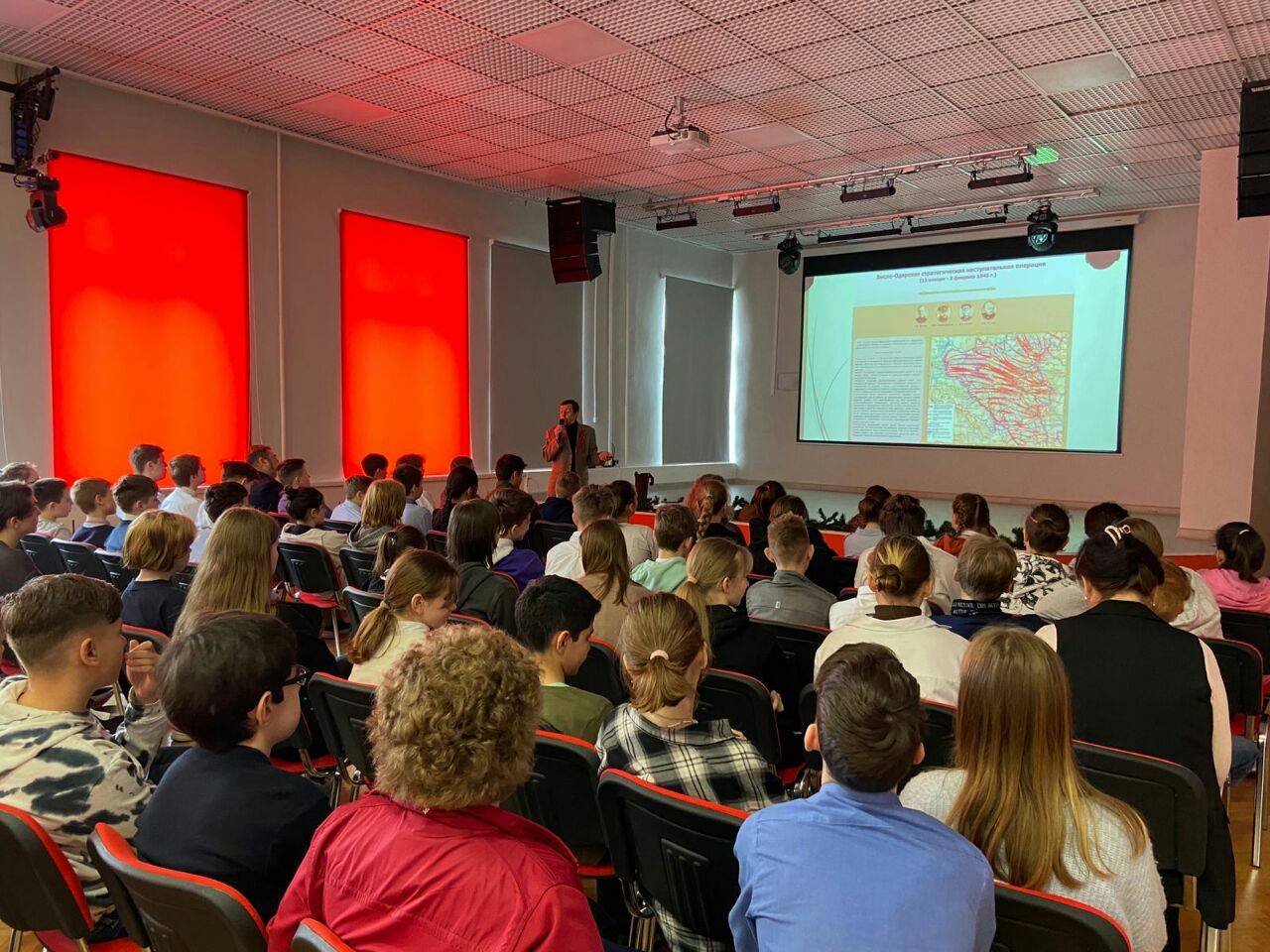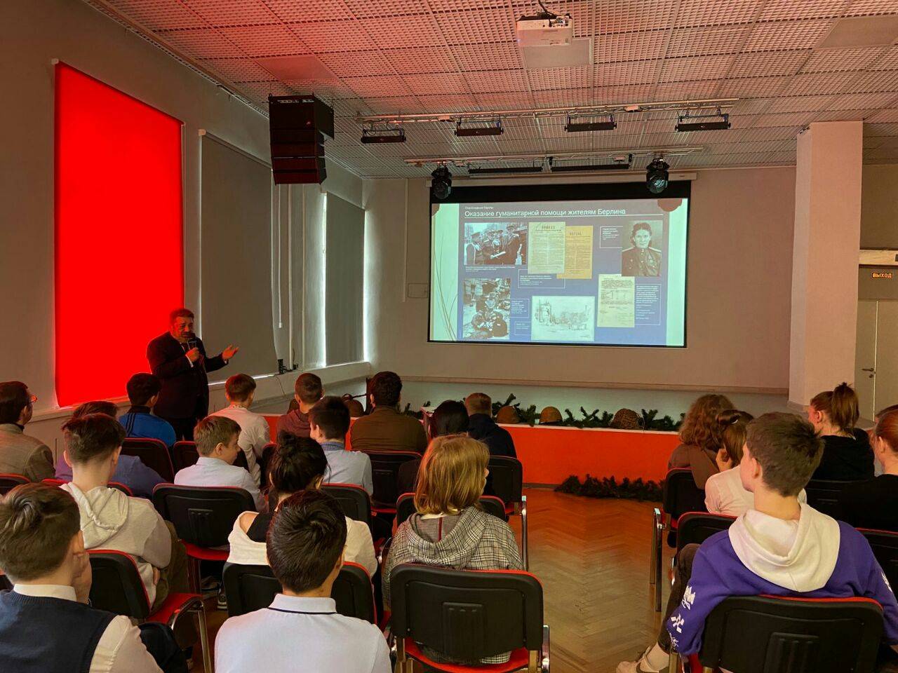 Лекции - беседы в школе им. В.В. Маяковского, посвящённые Берлинской операции Красной армии и значимости изучения военной истории России, провели 5 мая 2023 года представители Московского отделения РВИО. Б.Л. Соколов и проф. Г.С. Оганджанян провели два урока для 6 и 7 классов, на каждом из которых присутствовало по 4 класса вместе с преподавателями, всего более 100 человек.