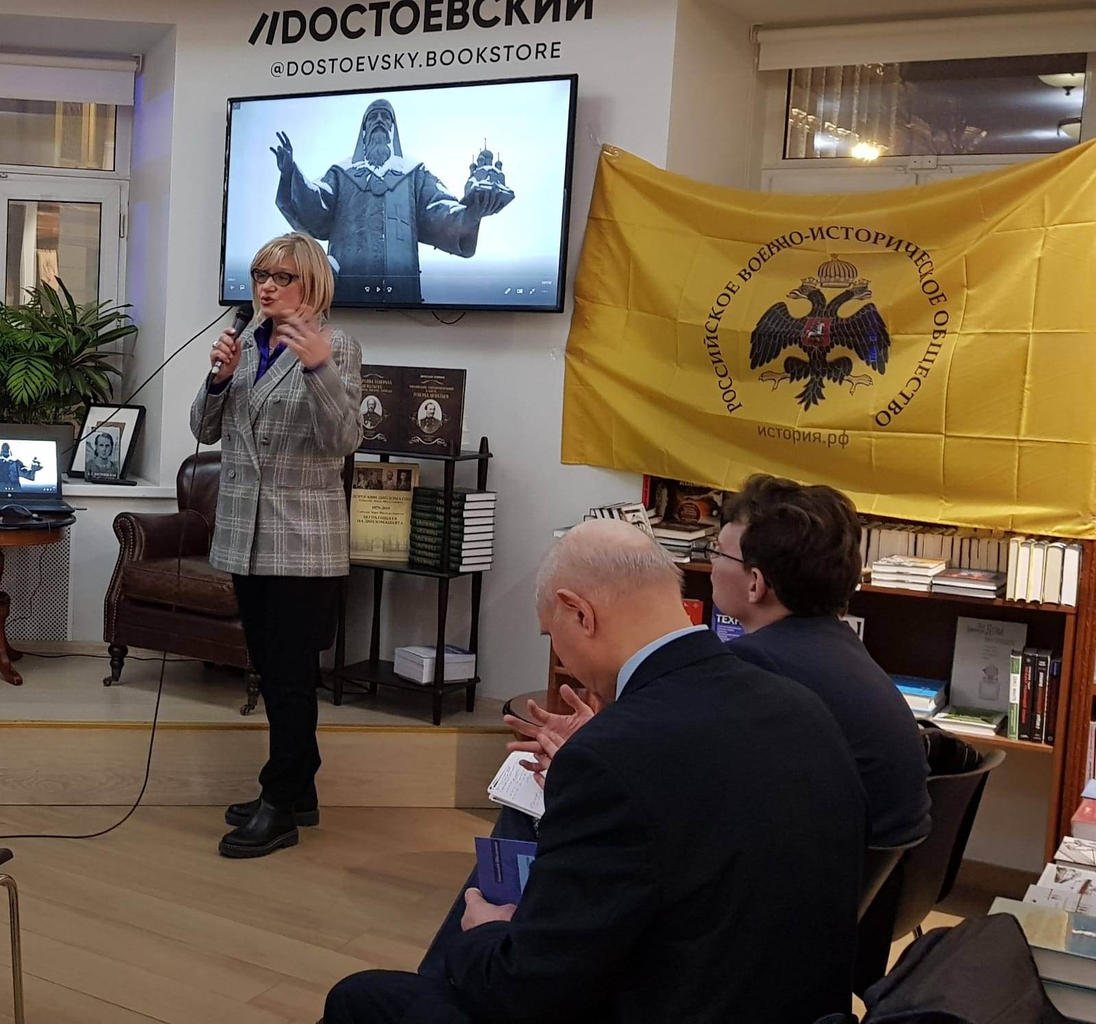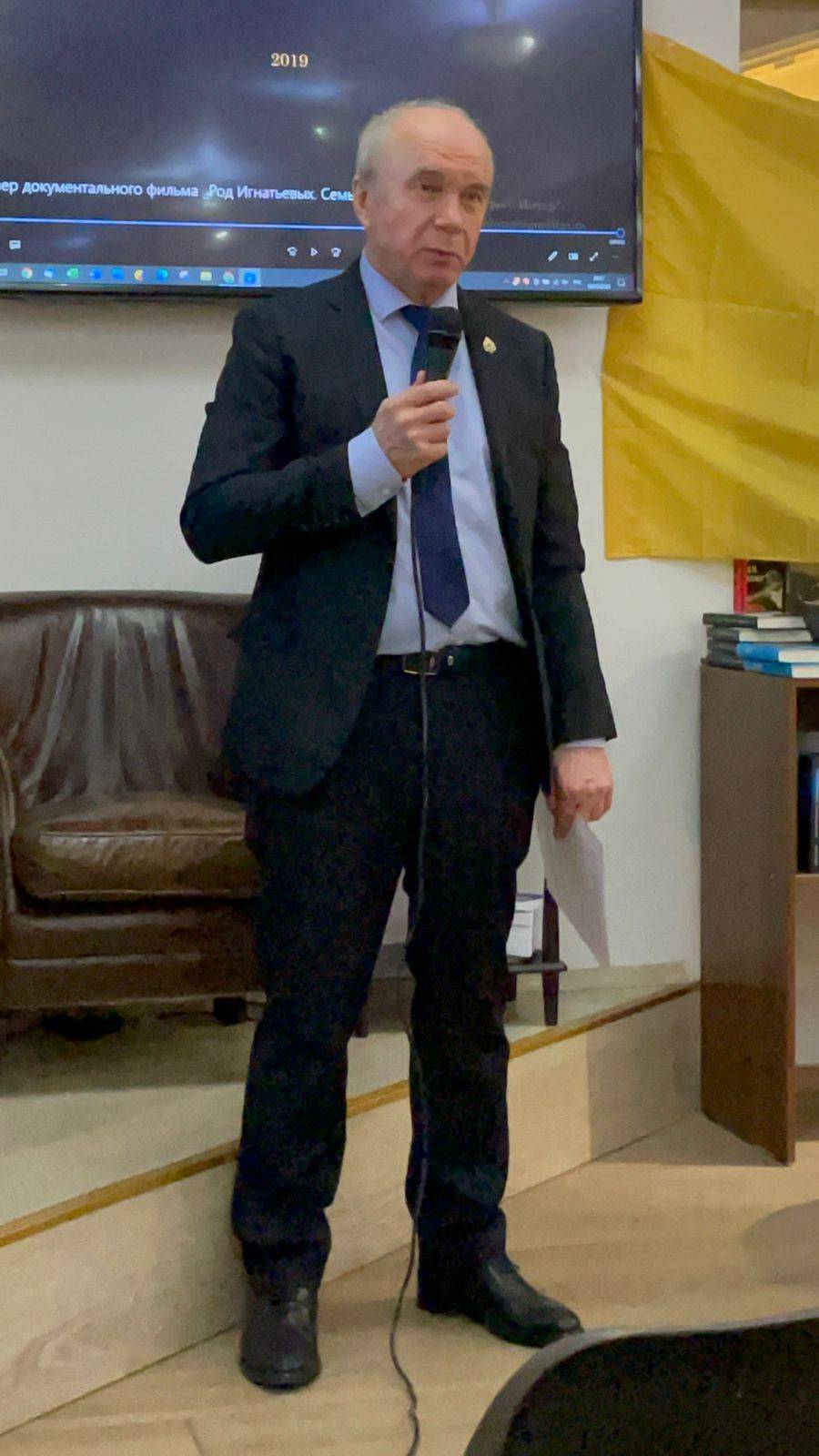 Руководитель международного мультимедийного просветительского проекта «Они создавали историю» Марина Геннадьевна Бутусова-Штольц представила свой фильм «Род Игнатьевых. 800 лет на службе Отечеству». Она рассказала о том, как создавался этот фильм, о людях, принимавших в нём участие, и местах, где проходили съёмки.