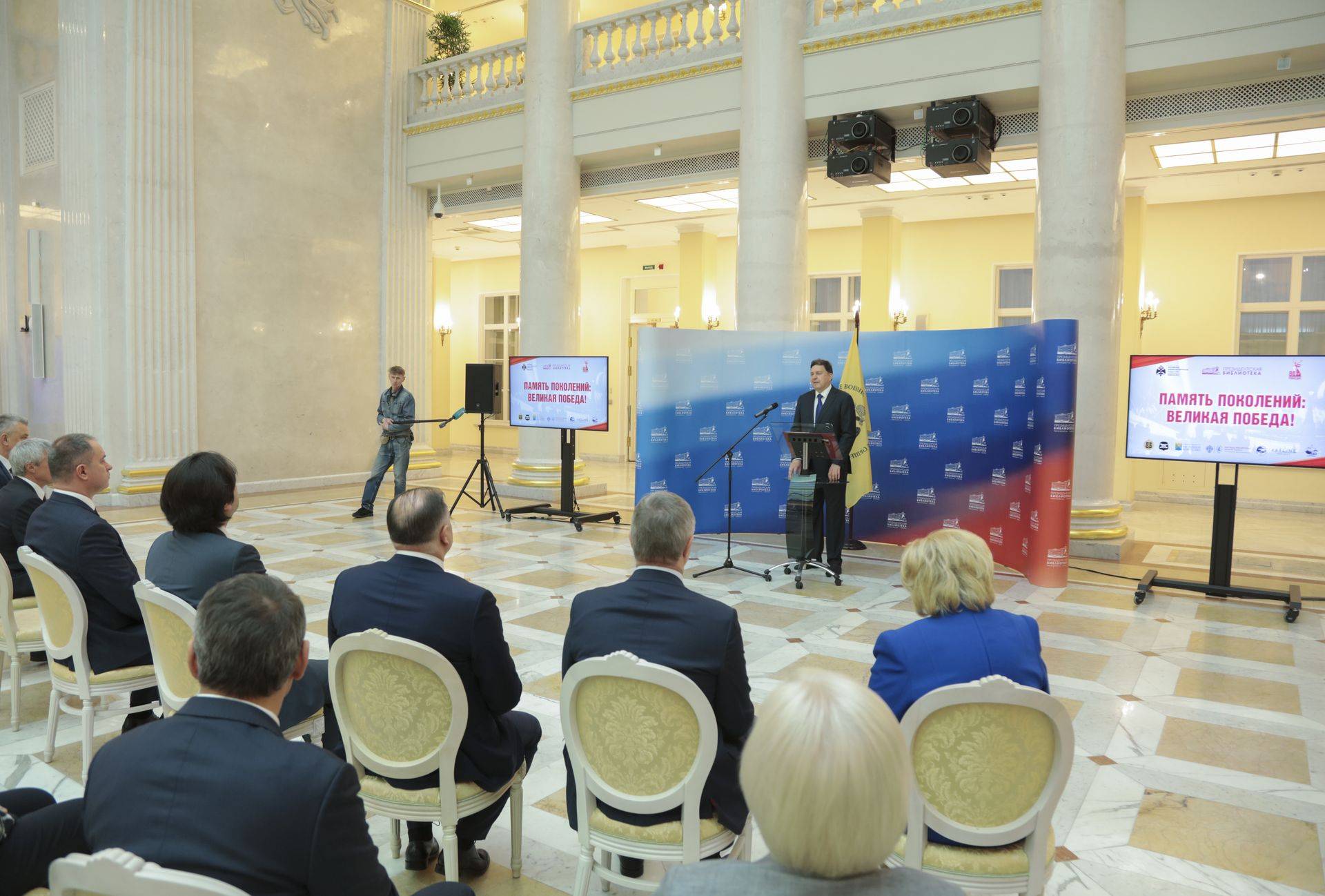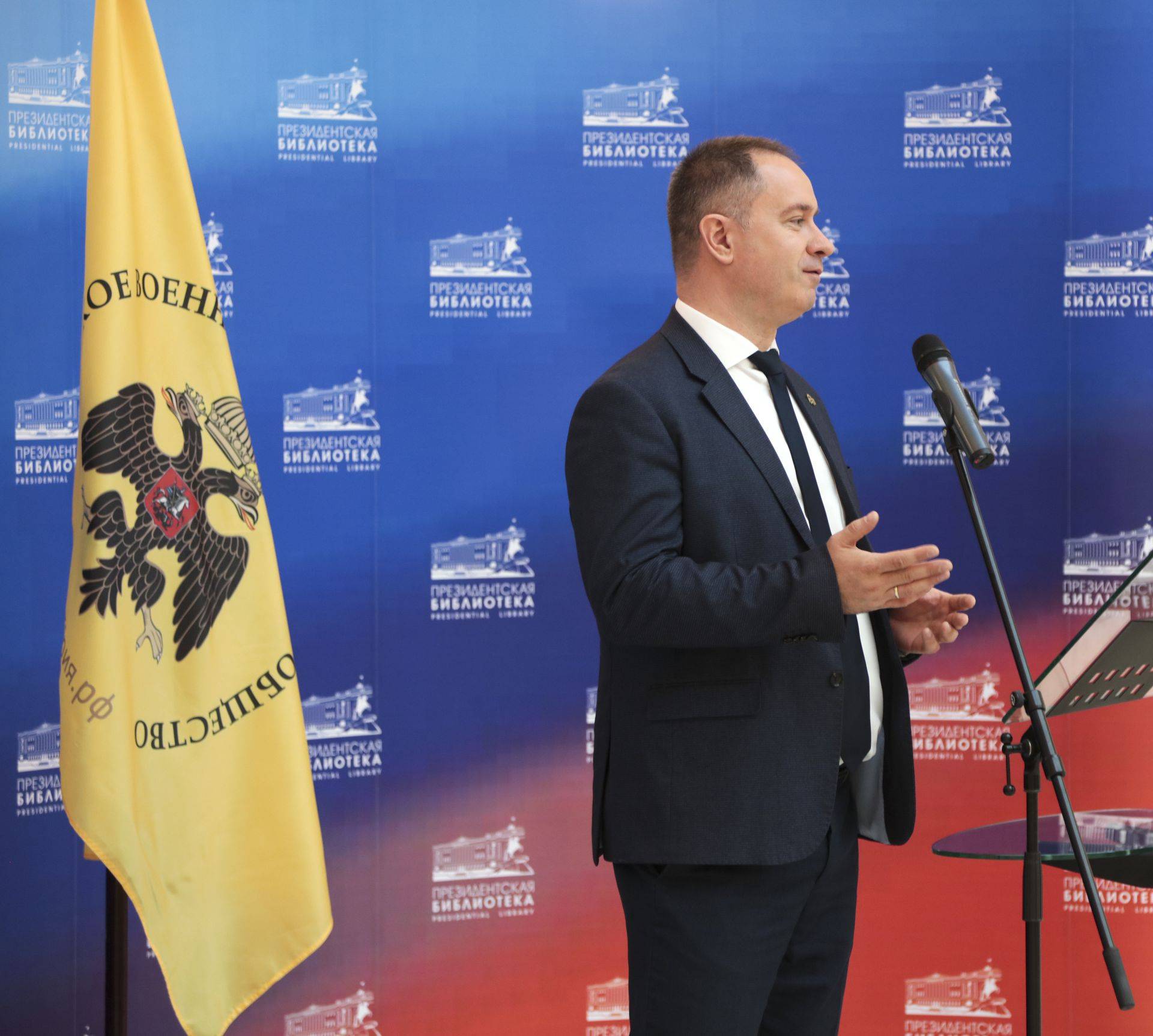С приветственными словами выступили исполнительный директор Российского военно-исторического общества Виталий Мартынюк и генеральный директор Президентской библиотеки, председатель Санкт-Петербургского регионального отделения Российского военно-исторического общества Юрий Носов.