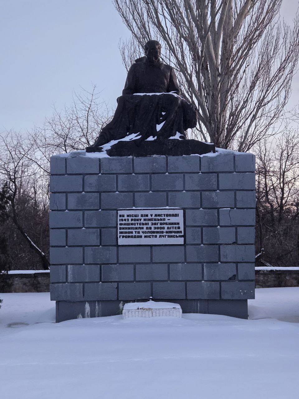 Братская могила мирных жителей Луганска «Не забудем, не простим!» находится в 150 метрах от трассы Луганск – Аэропорт, на одном из отрезков бывшего противотанкового рва. Здесь в ноябре 1942 года немецко-фашистские захватчики уничтожили до 3000 детей, женщин и мужчин – мирных граждан города Луганска.