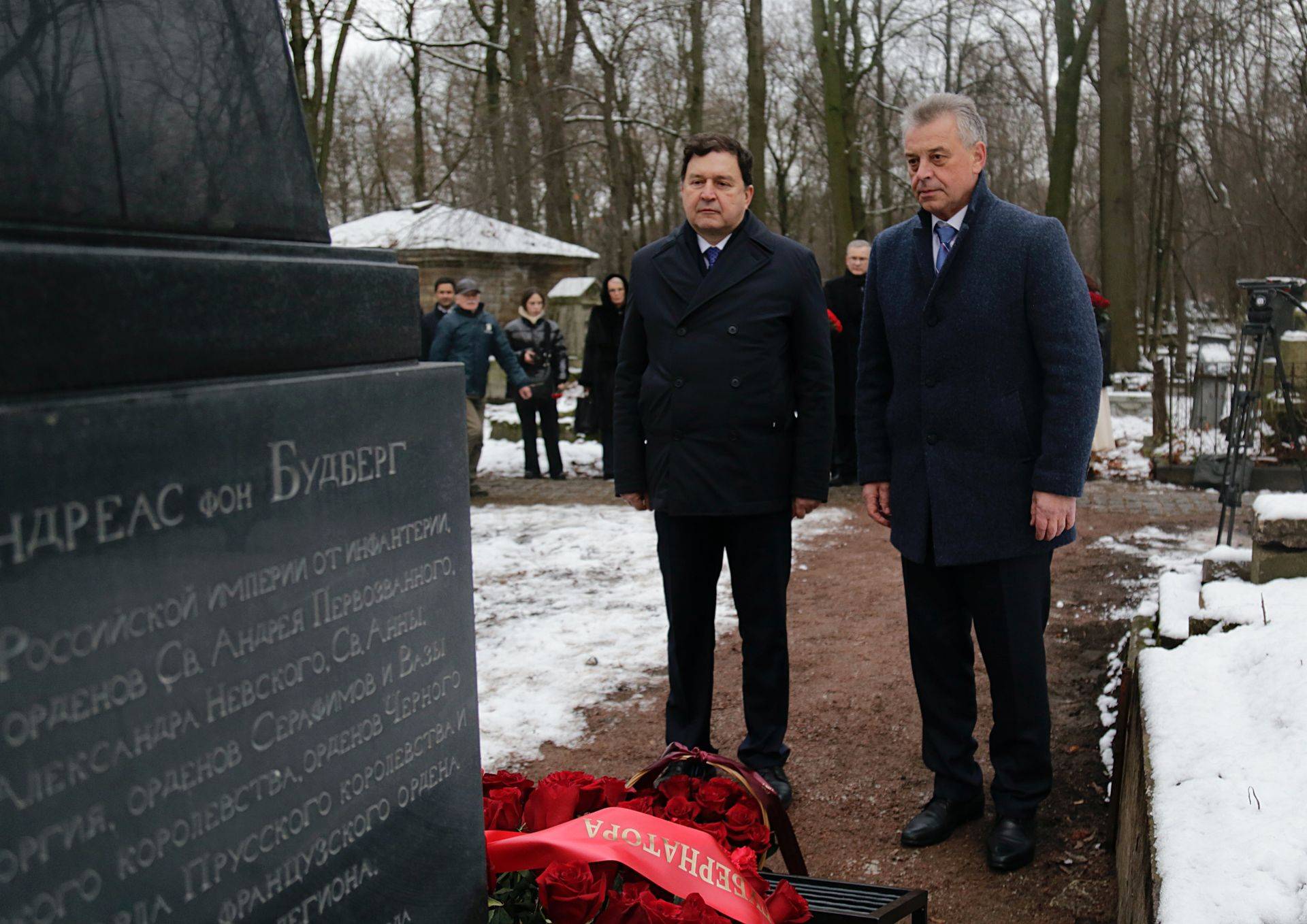 26 ноября 2025 года на Смоленском лютеранском кладбище в Санкт-Петербурге состоялась торжественная церемония открытия памятника министру иностранных дел Российской империи Андрею Яковлевичу Будбергу.