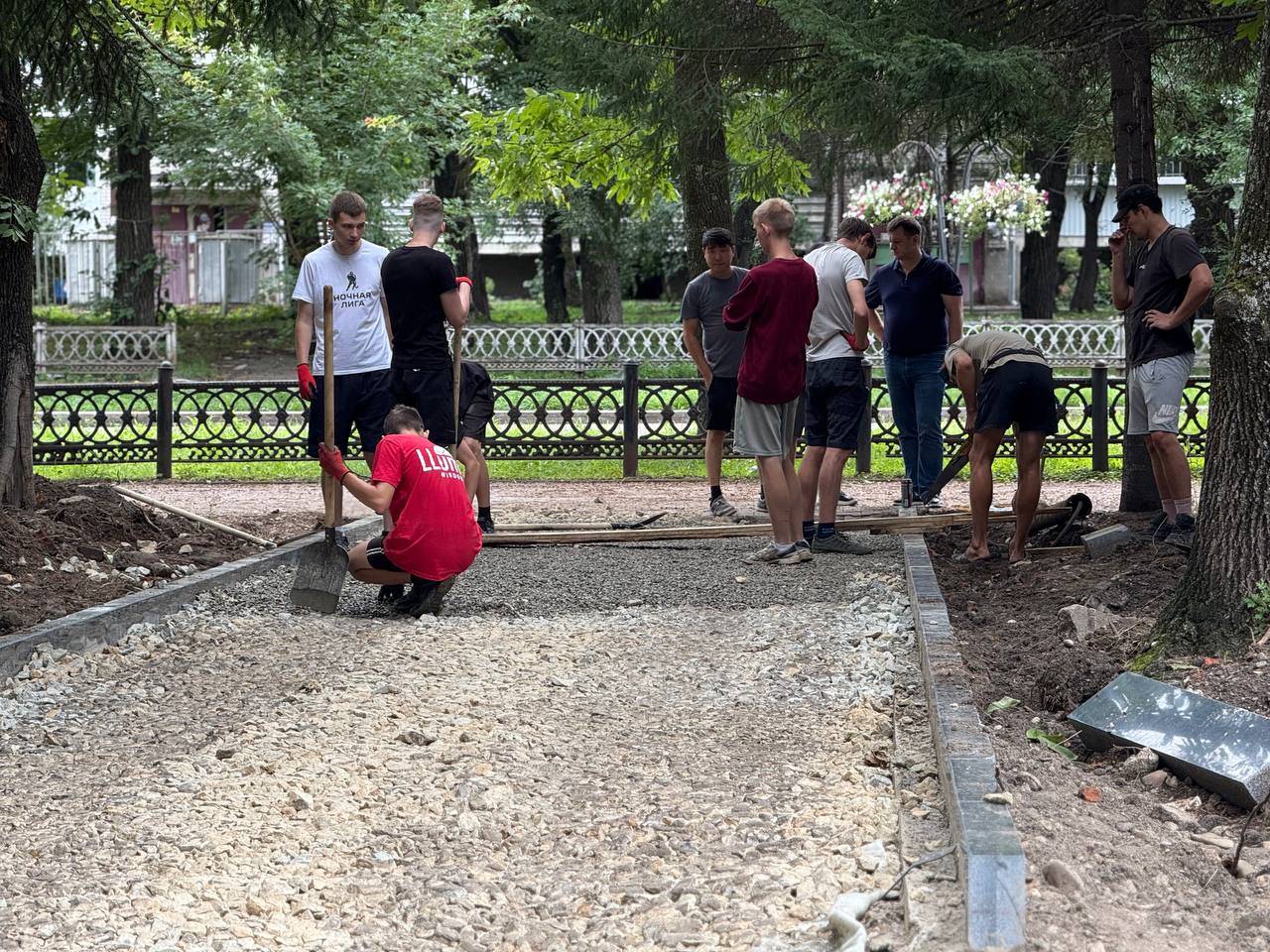 Председатель регионального отделения РВИО в ЕАО посетил объект реконструкции. Пподрядчики уже приступили к созданию новых удобных пешеходных зон и монтажу гранитной плитки на центральной стеле — территория постепенно преображается, приобретая запланированный облик
