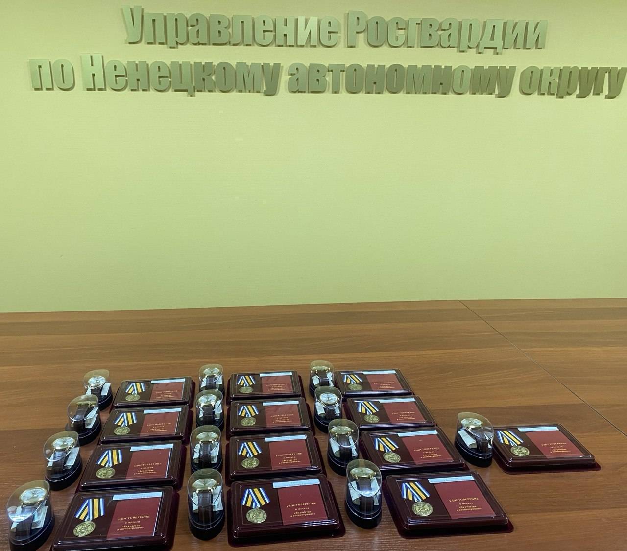 В преддверии Дня Героев Отечества, в торжественной обстановке председатель РО РВИО в Ненецком автономном округе, депутат Собрания депутатов НАО Андрей Ружников наградил региональной медалью «За участие в спецоперации» особо отличившихся военнослужащих и сотрудников Управления Росгвардии по Ненецкому автономному округу.
