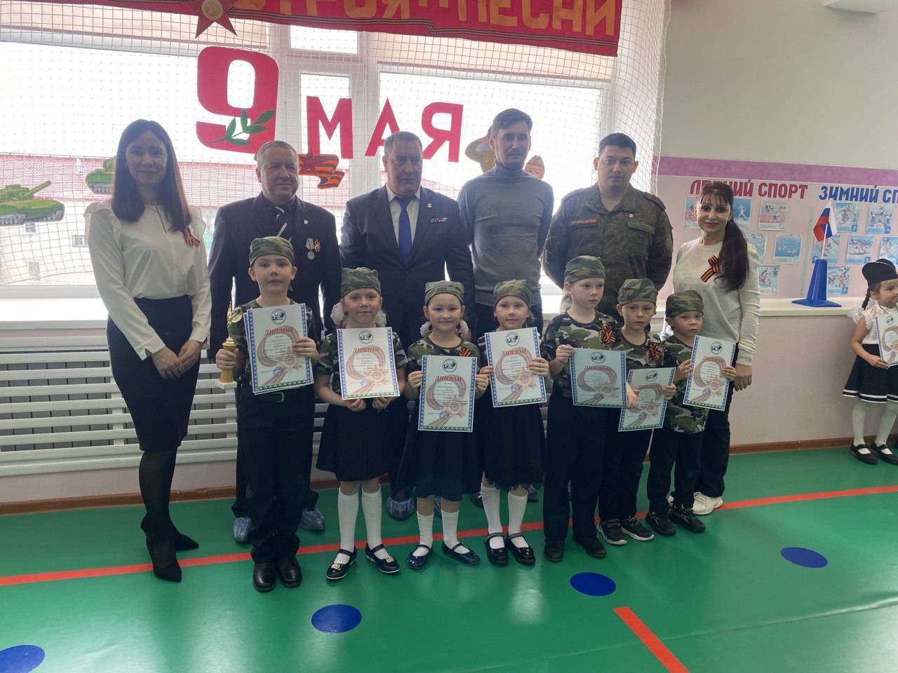 Выполнение строевых упражнений, прохождение с песней – все задания дошкольники выполняли серьезно и старательно. Дети выложились по полной программе. Праздничное мероприятие подарило всем детям-участникам и гостям заряд хорошего настроения, гамму впечатлений и патриотический настрой.