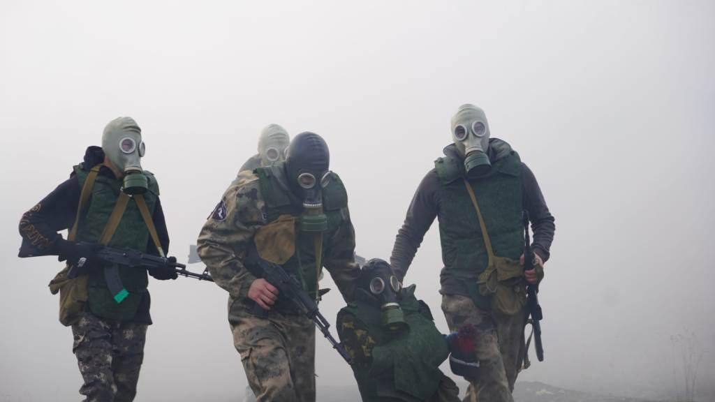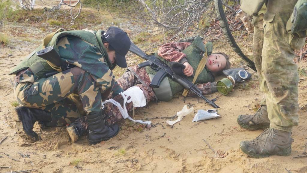 На этот раз участникам команд предстояло совершить марш-бросок по пересечённой местности в полной экипировке, с массогабаритными макетами оружия, выполнив вводные задания: преодоление заражённого участка местности в противогазе, передвижение на поле боя под огнём условного противника, оказание первой медицинской помощи и эвакуация с поля боя раненого товарища.