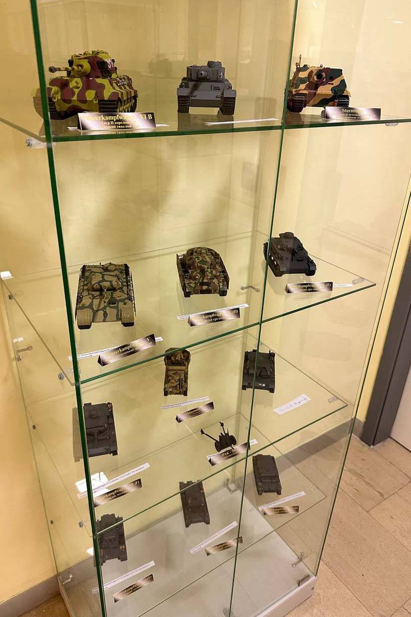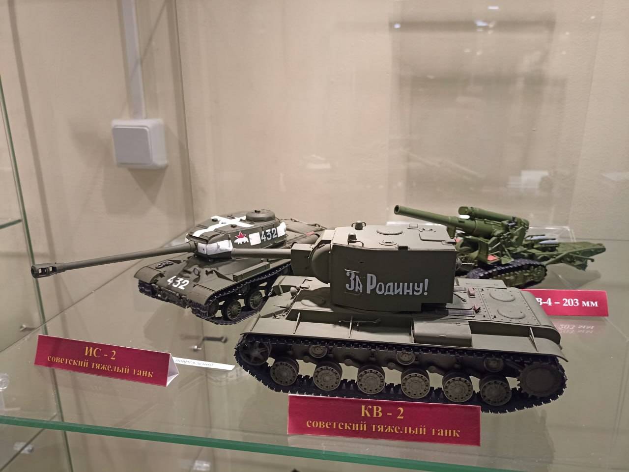 На выставке представлено 30 реалистичных моделей бронетанкового вооружения, автомобильной техники и артиллерийских систем советской Красной Армии и армии противника, которые с 2019 года создавал по историческим образцам Евгений Фомин – военнослужащий Росгвардии и участник военно-исторического общества. Модели созданы с большим умением и строгим соблюдением исторических и технических фактов и характеристик.