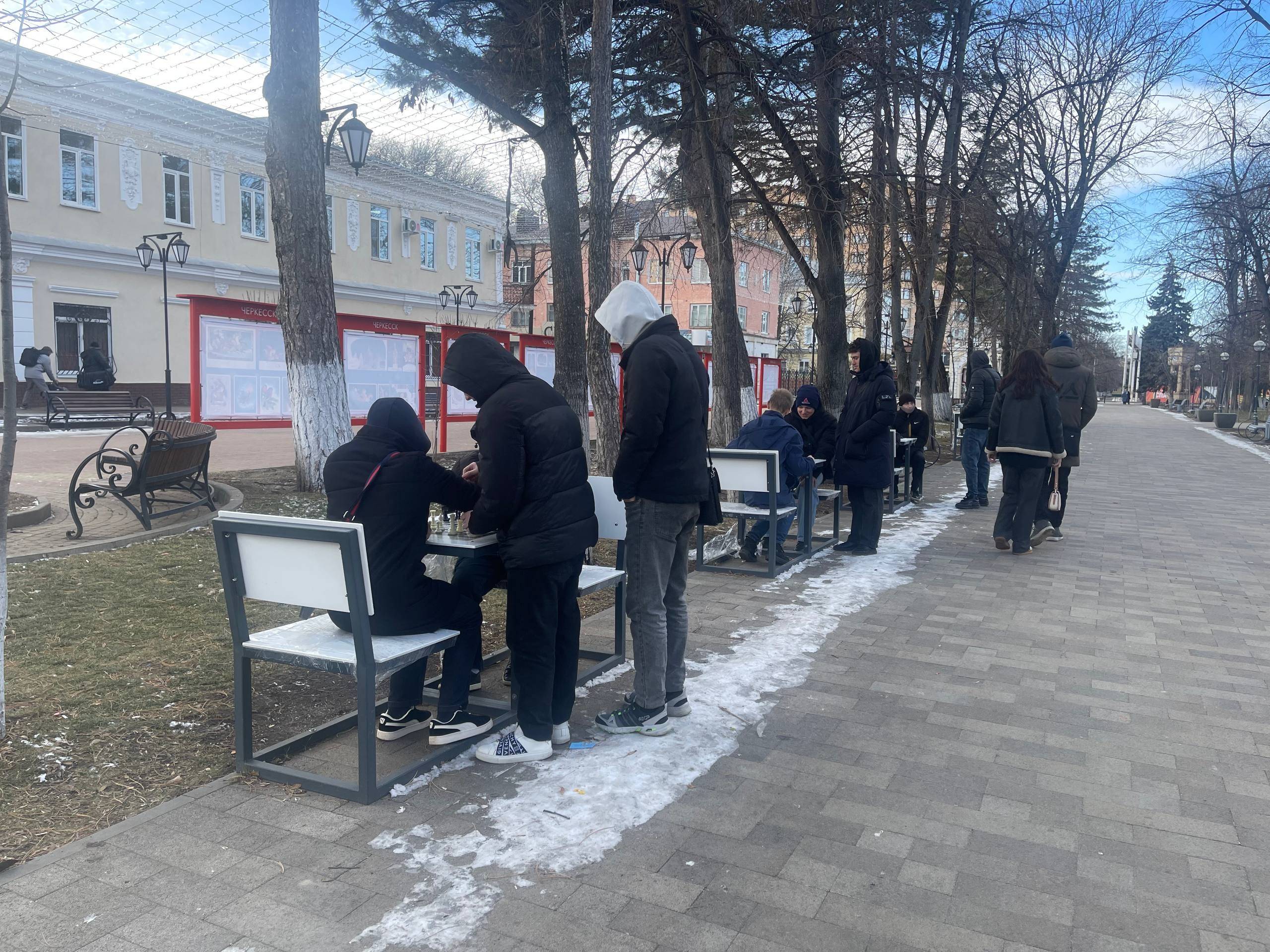 РО РВИО КЧР продолжает традицию живых, открытых мероприятий, объединяющих теорию и практику, прошлое и настоящее. 20 января мы успешно провели «Новогоднюю шахматную эстафету» — специальный турнир для молодёжи в парке 100-летия КЧР.