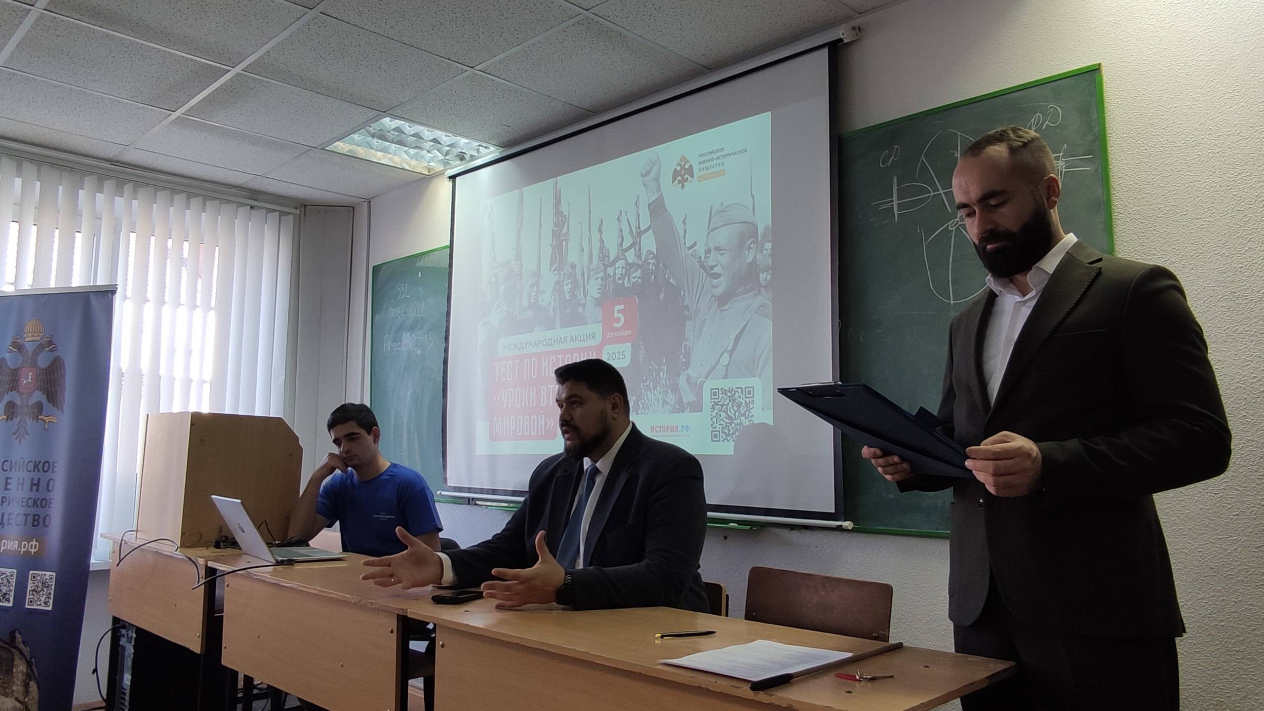 5 декабря в стенах Северо-Кавказской государственной академии (СКГА) царила особая атмосфера. Более шестидесяти студентов первого курса присоединились к масштабной международной акции — «Тест по истории «Уроки второй мировой». В год 80-летия Великой Победы этот проект, инициированный Российским военно-историческим обществом, приобретает особое звучание.
