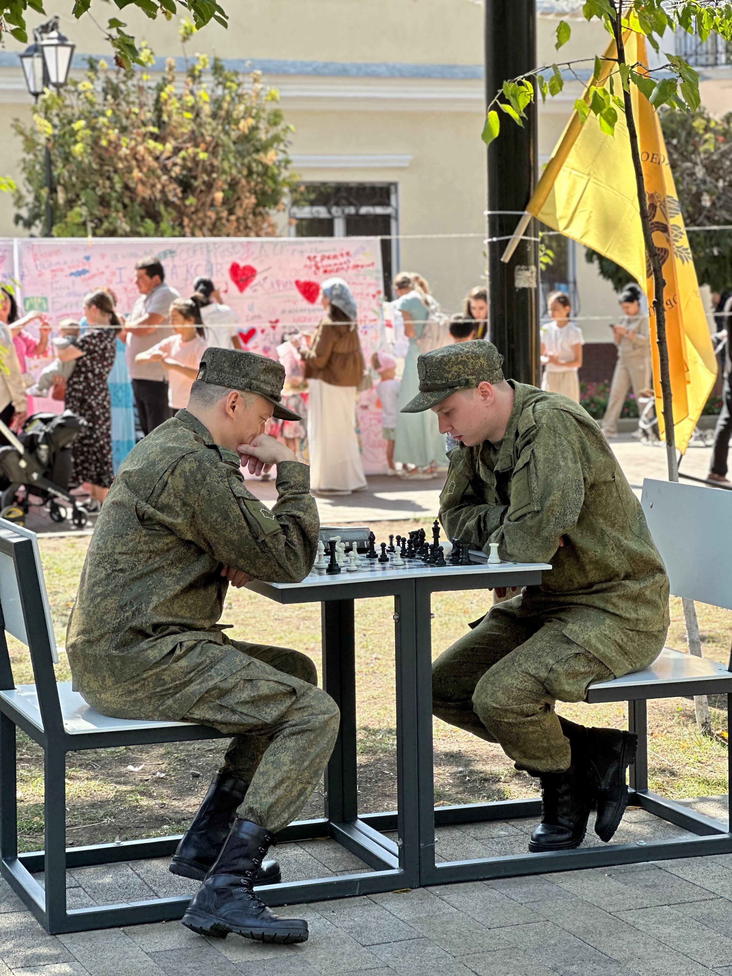 Шахматы объединили участников мероприятия, подарив им возможность насладиться игрой и общением.Уличные шахматные клубы в регионах России развиваются РВИО и ФШР по инициативе Владимира Мединского.