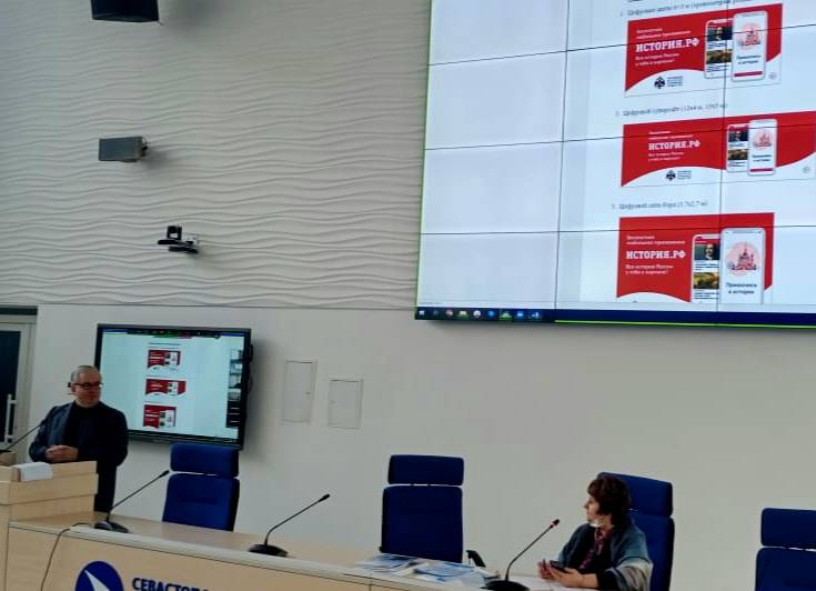 На Круглом столе слово для доклада было предоставлено члену Совета РО РВИО в Севастополе, советнику Музея героической обороны и освобождения Севастополя Дмитрию Серову, который презентовал участникам проект РВИО - мобильное приложение История.РФ. "К сожалению, сегодня молодые люди часто полностью погружены в виртуальный мир, однако мы можем и обязаны использовать и этот фактор во благо им", - отметил Дмитрий Серов. Именно для этого создано мобильное приложение История.РФ, которое ориентировано в первую очередь на учащихся и студентов. Разработчики, по его мнению, удачно использовали тягу молодых к желанию быстро получить ответ на свой вопрос, подготовиться к лекции, практической или контрольной работе в ходе обучения. "Доступность, простота использования, отличный контент - вот те факторы, которые помогут приложению стать популярным среди учащихся, да и всех любителей истории России. Особое место занимает, по мнению эксперта, процесс наложения мобильного приложения на новые учебники по истории - это возможно благодаря современным технологиям, когда посредством QR-кодов учебник "оживает", дает более полное и богатое представление о событиях и процессах истории России. Конечно, по его мнению, наряду с этим стоит вернуться к созданию единого учебника и программ по истории России. "Мы презентовали проект История.РФ, который разработан РВИО и может стать базой для системного обучения отечественной истории среди учащихся", - отметили в региональном отделении Общества.