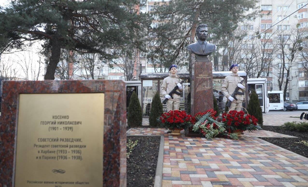 Георгий Косенко работал в Ставропольском крае и по всему Северному Кавказу, боролся с контрреволюцией. Затем на дальних рубежах он охранял Россию и создал одну из лучших резидентур. По словам автора бюста Ивана Кисиленко, работа была непростая, поскольку для этого у него было всего две фотографии Косенко – в профиль и в анфас. Советских разведчиков много не снимали. Ситуация осложнялась тем, что у Георгия Николаевича не осталось никого из ближайших родственников.