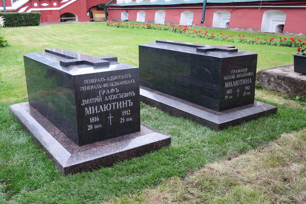 8 июля 2016 года в Новодевичьем монастыре в Москве состоялось открытие воссозданных мемориальных надгробий генерал-фельдмаршала Дмитрия Алексеевича Милютина и его супруги Натальи Михайловны. Церемония была приурочена к 200-летию со дня рождения Дмитрия Милютина.