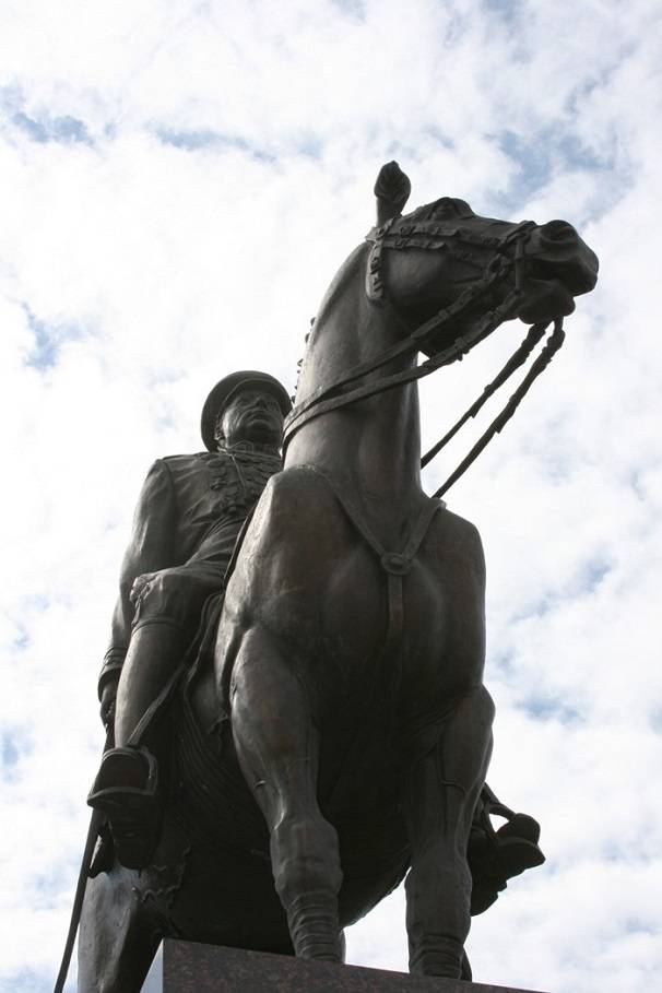 Скульпторы Владимир и Данила Суровцевы создали монумент ещё в 2011 г. Они создали конную статую маршала в парадной форме, создав образ Рокоссовского во время командования легендарным Парадом Победы в Москве 24 июня 1945 г. При работе над памятником скульпторы использовали документальные киноматериалы, а также личные вещи Рокоссовского — его подлинный мундир и парадную саблю.