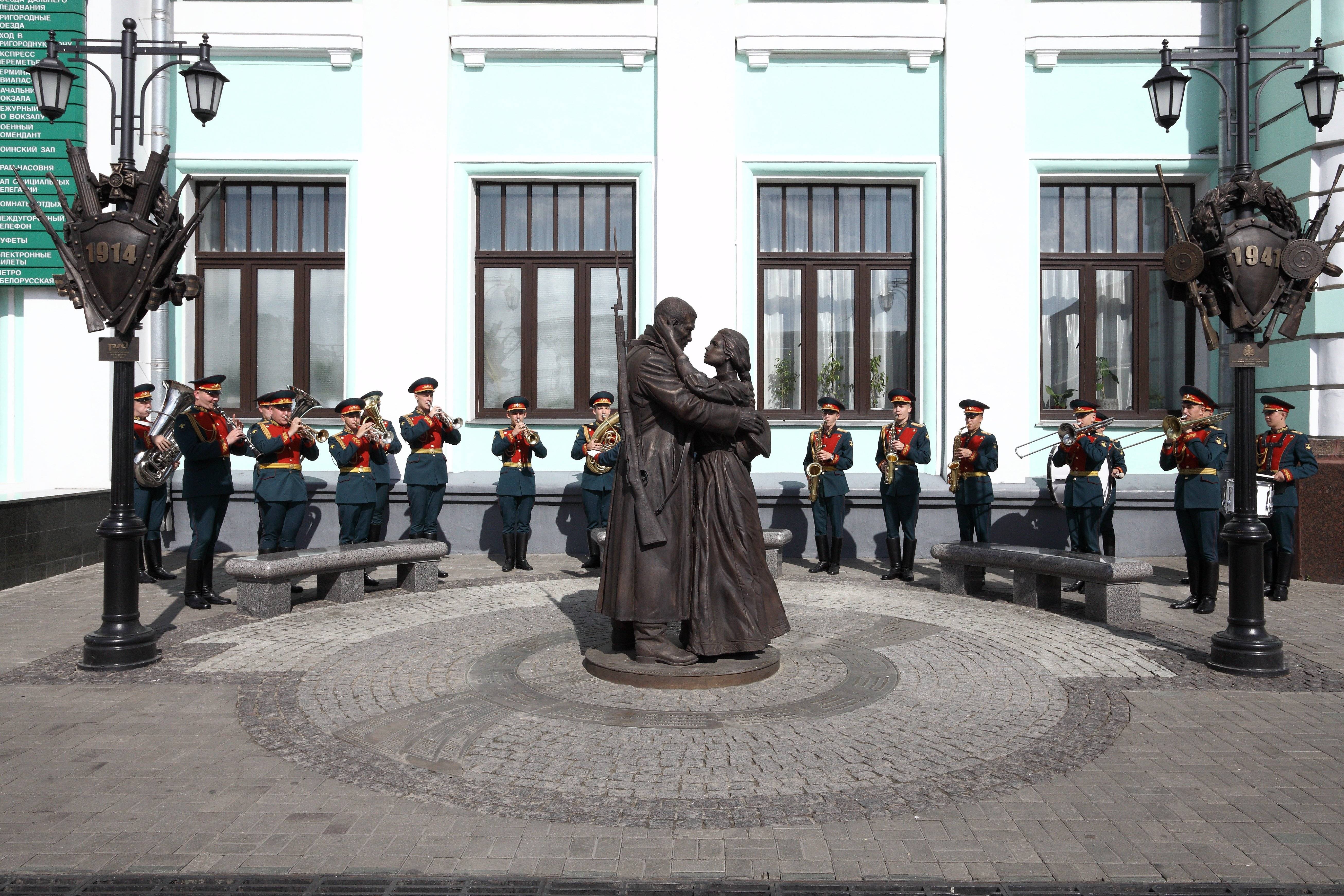 8 мая 2014 года на перроне Белорусского вокзала Российское военно-историческое общество и ОАО «РЖД» открыли скульптурную композицию «Прощание Славянки» в честь знаменитого военного русского марша Василия Агапкина.