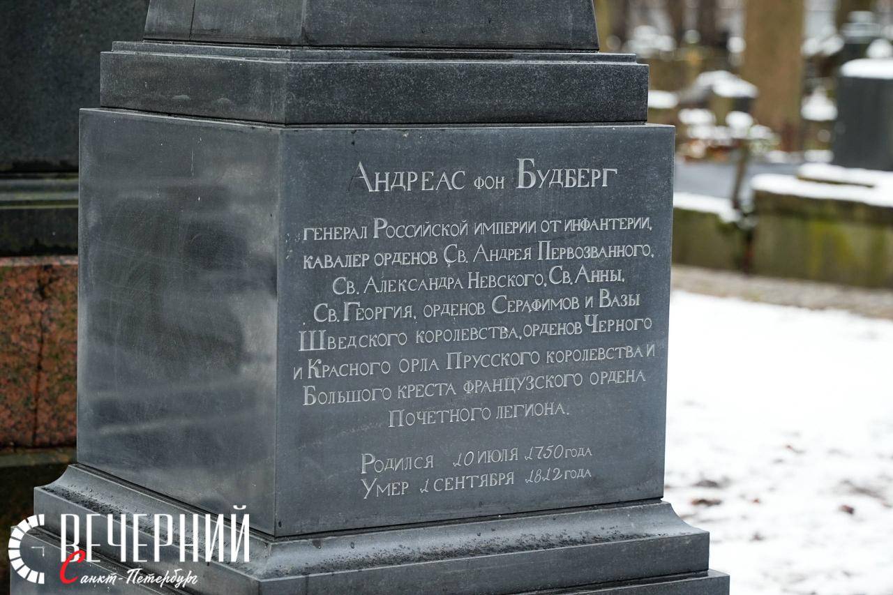 Памятник Министру иностранных дел Российской Империи Андрею Яковлевичу Будбергу был открыт 26 ноября 2025 года в Санкт-Петербурге. Уникальное надгробие на Смоленском лютеранском кладбище восстановлено Российским военно-историческим обществом к 275-летию со дня рождения государственного деятеля. По имеющимся немногочисленным архивным фотографиям Российское военно-историческое общество восстановило внешний вид исторического надгробия на могиле Андрея Будберга. Правительство Санкт-Петербурга и Комитет по внешним связям Санкт-Петербурга предоставил уникальные фотоматериалы из фондов Научного архива Института истории материальной культуры РАН.
