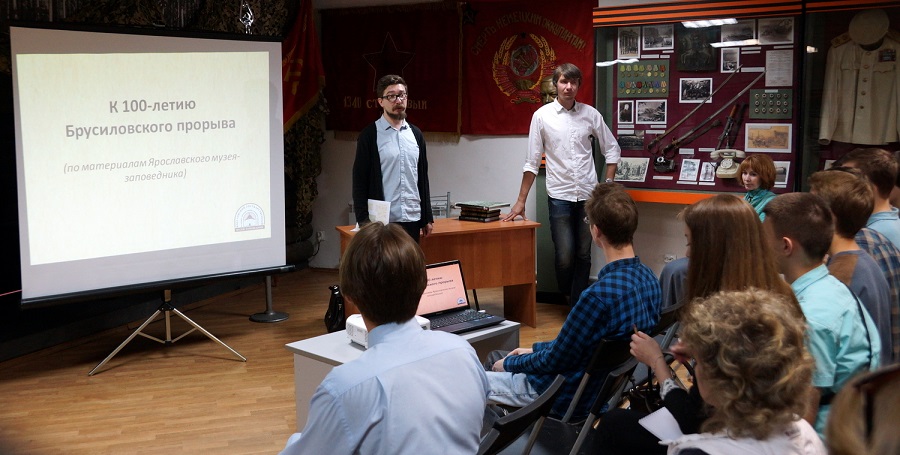 В Ярославле прошли тематические вечера, посвящённые 100-летию Брусиловского прорыва. В Музее Боевой Славы (отдел военной истории Ярославского государственного историко-архитектурного и художественного музея-заповедника) прошли «Уроки мужества» со школьниками, основанные на материалах, хранящихся в фондах музея-заповедника. Во встречах приняли участие члены Совета регионального отделения РВИО в Ярославской области Виктория Марасанова, Михаил Нянковский и Игорь Ямщиков. Программу, посвящённую одной из главных боевых операций Первой мировой войны, провели заведующий Музеем Боевой Славы, кандидат исторических наук Михаил Кербиков и научный сотрудник Ярославского музея-заповедника, аспирант кафедры музеологии и краеведения ЯрГУ Игорь Акимов. У юных слушателей тематические встречи вызвали большой интерес.