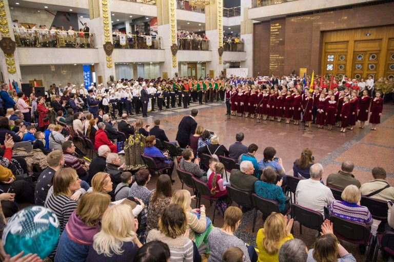 В Музее Победы состоялся праздничный музыкальный концерт, посвященный Дню защитника Отечества. Основной программой мероприятия стало выступление Сводного детского духового оркестра «Юные фанфары России», который составили 1000 детей - музыкантов.