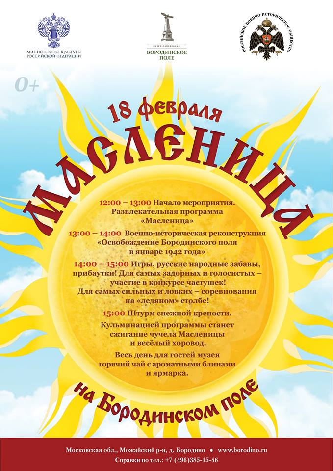 18 февраля в Музее-заповеднике «Бородинское поле» проводят зиму праздничными мероприятиями.