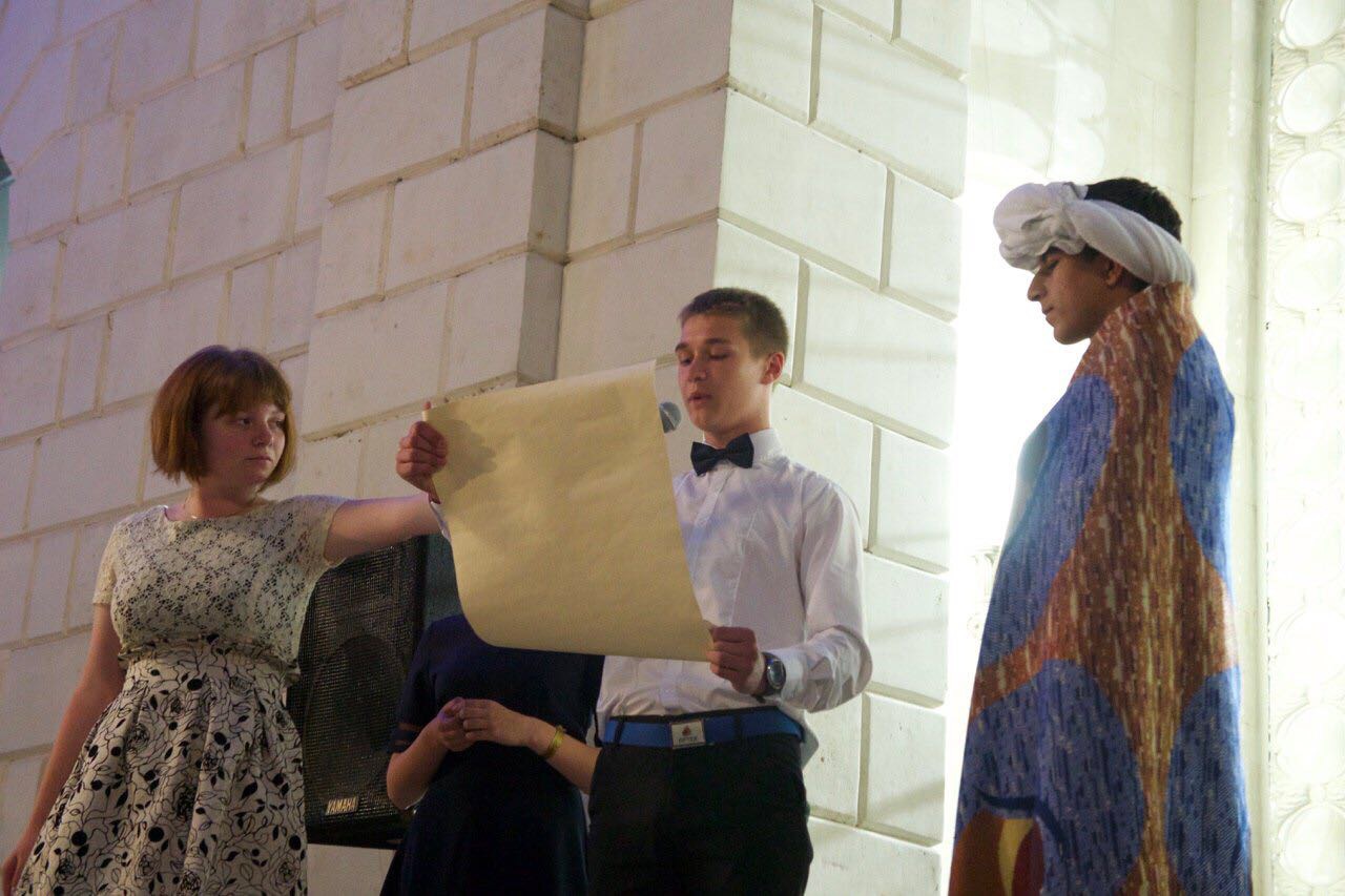 Благодаря слаженной работе юных любителей истории на двух этажах дворца удалось развернуть масштабную экспозицию, посвященную военной истории, музыке, литературе и цирковому искусству.