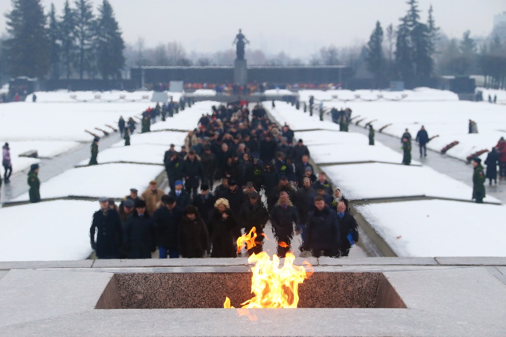 Сегодня, 27 января, на Пискаревском мемориальном кладбище (Санкт-Петербург) прошла торжественно-траурная церемония в честь 73-й годовщины полного освобождения Ленинграда от фашистской блокады.