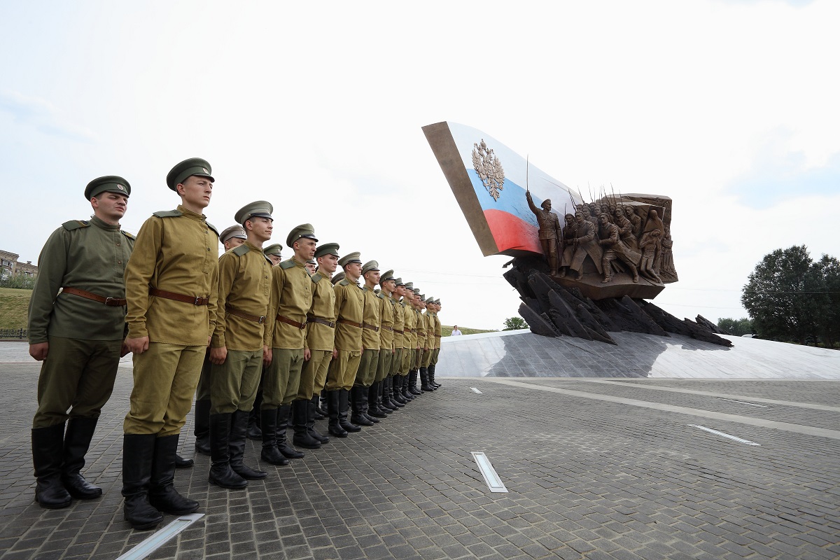 Первый общенациональный памятник героям и жертвам Первой мировой войны был установлен Российским военно-историческим обществом в Москве на Поклонной горе в 2014 году к столетию начала войны. На церемонии открытия монумента присутствовали: Президент Российской Федерации Владимир Путин и Министр культуры РФ, Председатель РВИО Владимир Мединский.