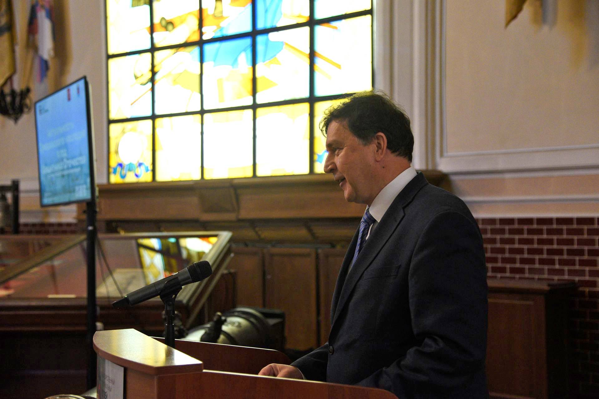 С докладом на тему «Стрелы времени» в историческом просвещении» выступил начальник научно-методического отдела, ученый секретарь Президентской библиотеки Сергей Большаков.