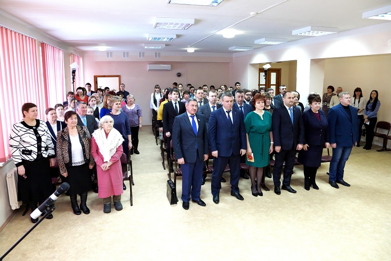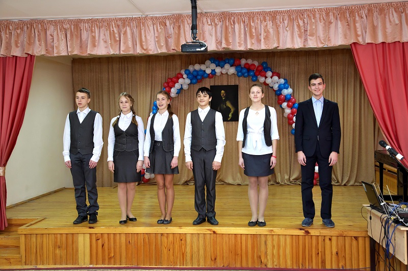 Первая часть торжественной церемонии прошла в актовом зале школы. Памятник торжественно открыли ученики Анастасия Финогеева и Николай Липидин, после чего гости возложили к бюсту цветы.