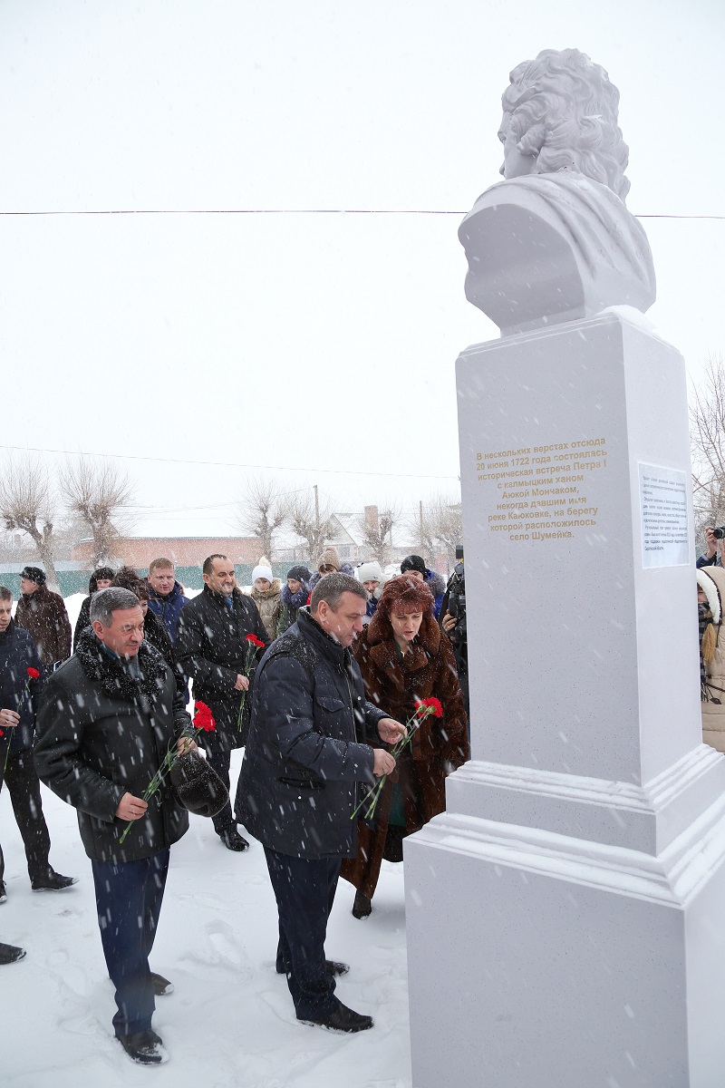 В селе Шумейка Энгельсского района Саратовской области состоялось торжественное открытие бюста императора Петра Первого. Памятник установлен у стен местной школы в рамках всероссийского патриотического проекта «Аллея российской славы», призванного увековечить память выдающихся людей, своими трудами и подвигами составивших славу Отечества.