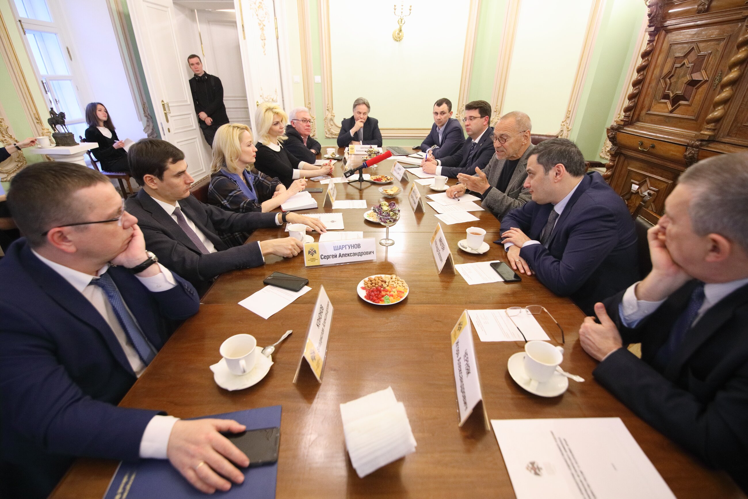 В заседании приняли участие: исполнительный директор РВИО Александр Барков, директор департамента музеев Минкультуры РФ Владислав Кононов, директор Государственного исторического музея Алексей Левыкин, генеральный директор Московской государственной академической филармонии Алексей Шалашов, Депутаты Государственной думы ФС РФ Александр Хинштейн и Сергей Шаргунов, главный редактор ИД «Аргументы и факты» Игорь Черняк.