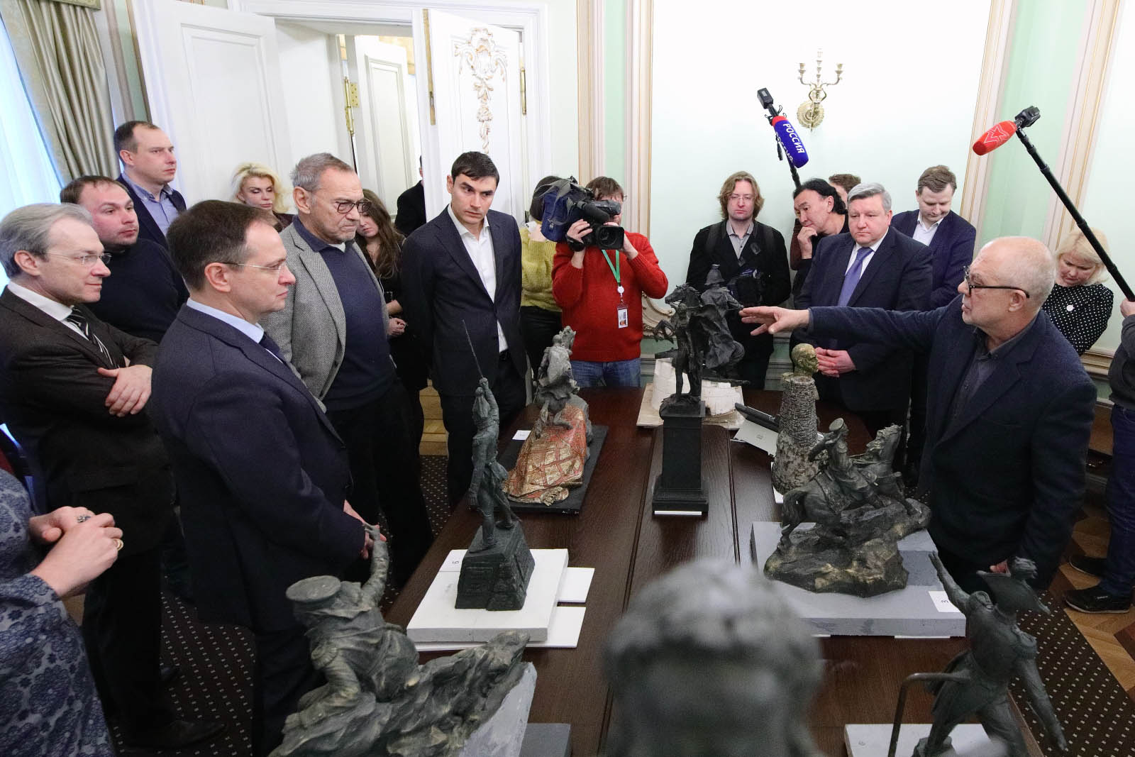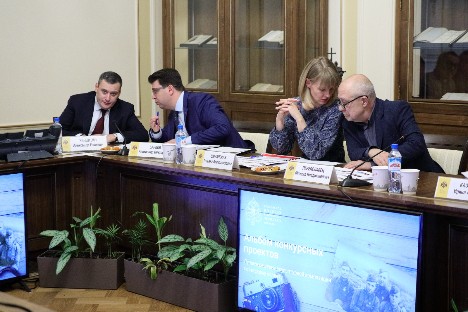 В штаб-квартире Российского военно-исторического общества состоялось заседание Творческого совета РВИО по монументальному искусству. Совещание провели Помощник Президента РФ, Председатель РВИО Владимир Мединский и Председатель Творческого совета РВИО Андрей Кончаловский.