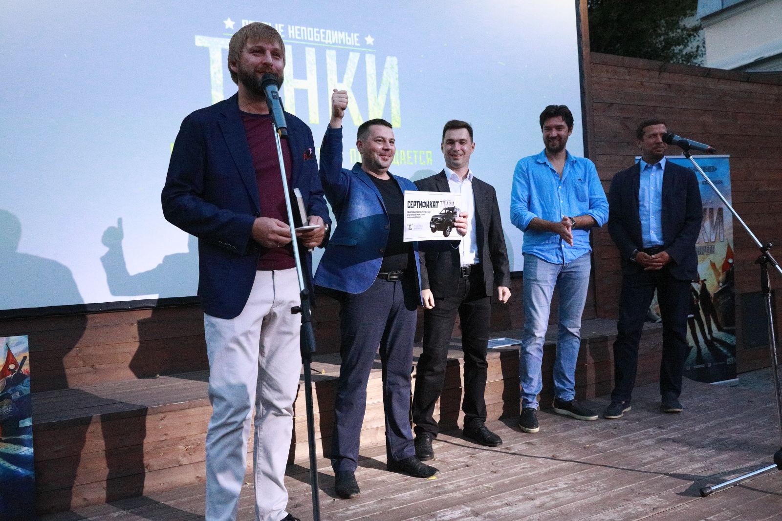 В КиноСквере РВИО были подведены итоги розыгрыша автомобилей "УАЗ" среди зрителей "Танков". Трое счастливчиков стали обладателями новых внедорожников. Сертификаты на их получение под аплодисменты вручили создатели фильма.
