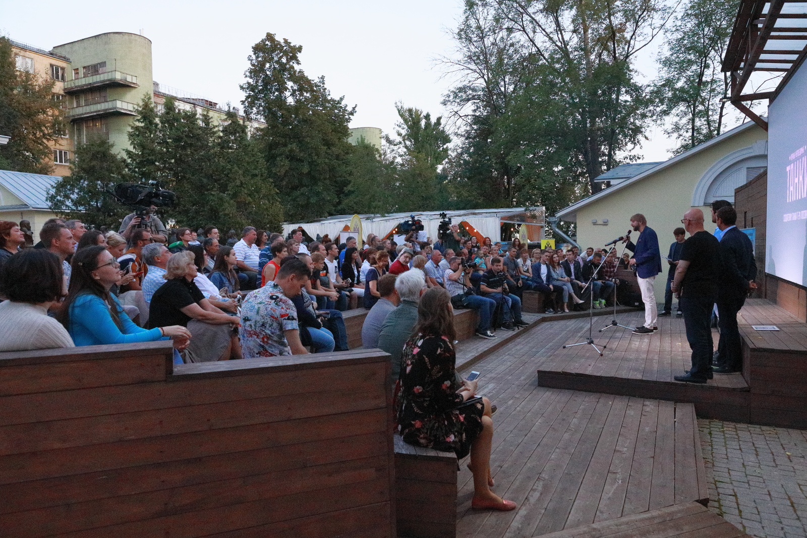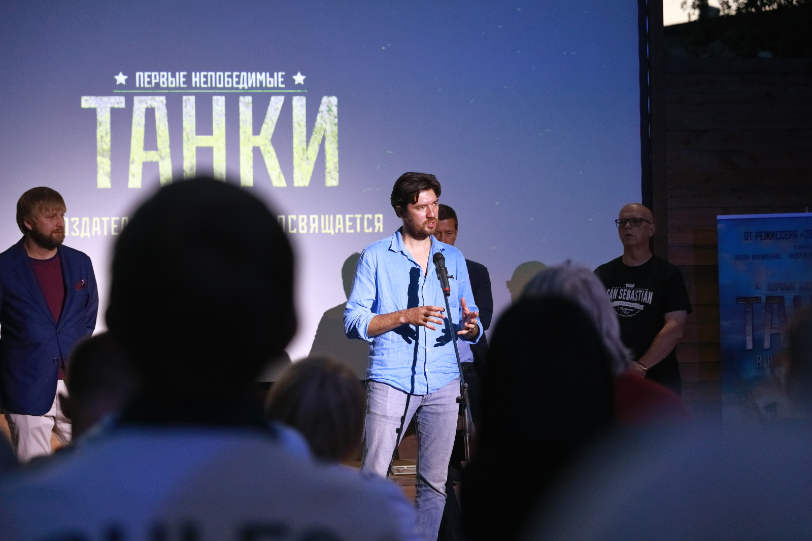 Посетители КиноСквера смогли пообщаться с автором сценария Андреем Назаровым, режиссёром Кимом Дружининым, актером Андреем Мерзликиным и продюсером Дмитрием Щербановым.