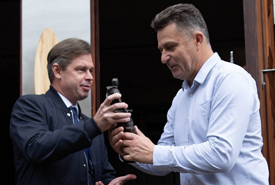 Андрей Орлов также передал в музей уменьшенную копию Ржевского мемориала Советскому Солдату, который был возведён Российским военно-историческим обществом на месте кровопролитных боёв в Тверской области.