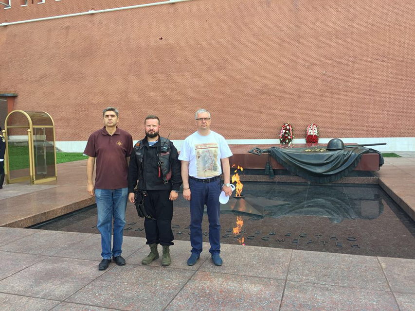 Автоколонна прибыла в столицу из Смоленска, чтобы объединиться с основной группой отделения «Дороги Победы» Всероссийского мотоклуба «Ночные Волки». Перед стартом участники возложили цветы к Вечному огню на Могиле неизвестного солдата и почтили минутой молчания тех, кто отдал свои жизни за свободу и независимость нашей Родины.