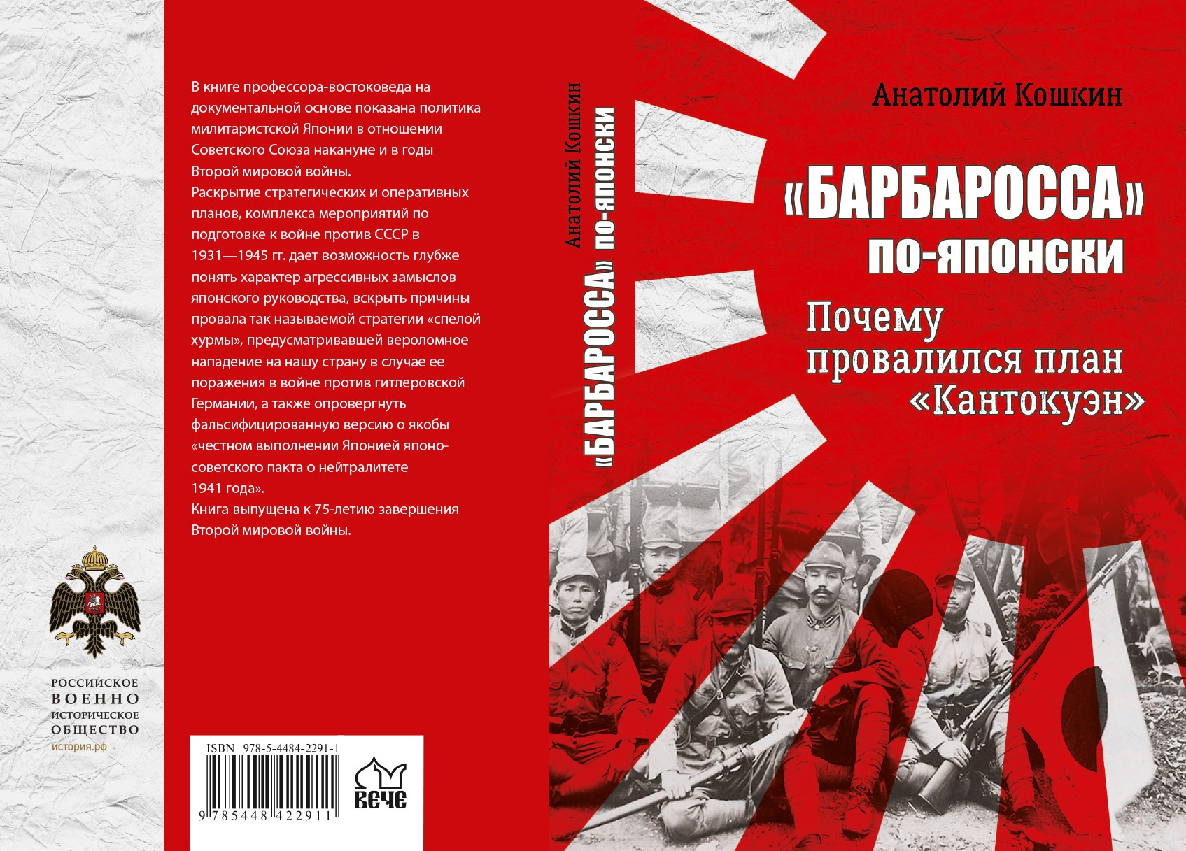 Российское военно-историческое общество выпустило в издательстве «Вече» новую книгу Анатолия Кошкина, профессора Института стран Востока, эксперта РАН. Книга под названием «Барбаросса» по-японски. Почему провалился план «Кантокуэн» на документальной основе рассказывает о политике милитаристской Японии в отношении Советского Союза накануне и в годы Второй мировой войны.