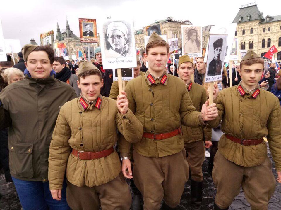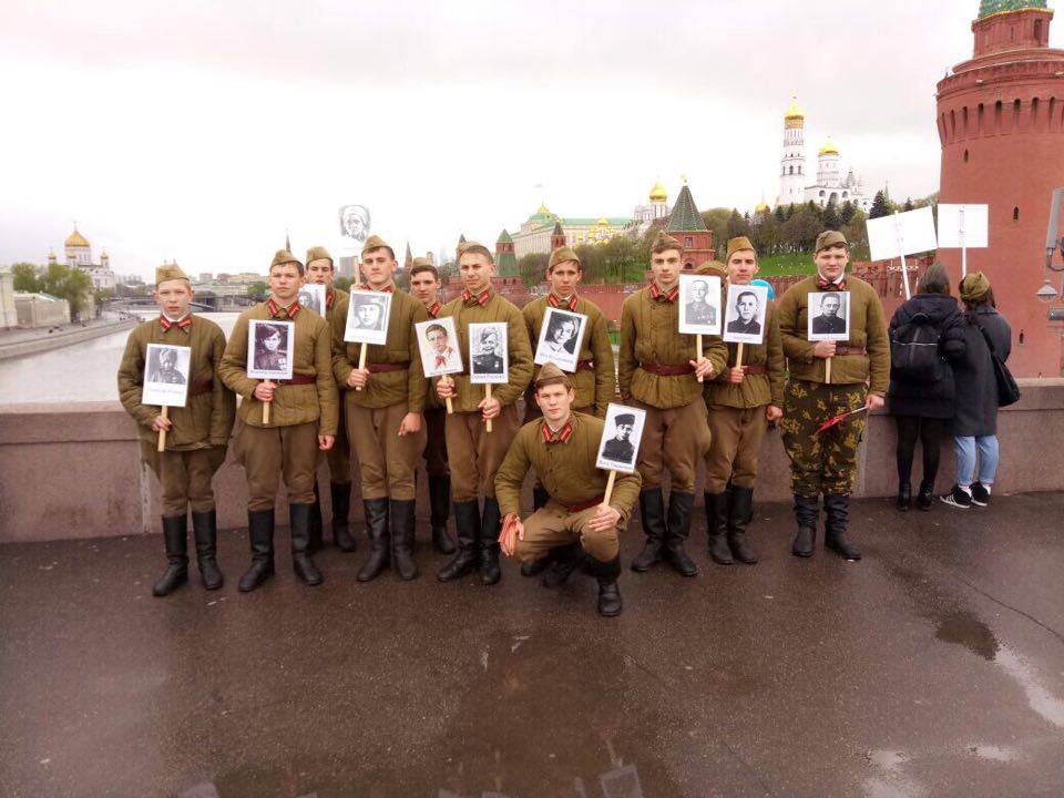 Юноши в возрасте от 14 до 17 лет, прошли по Красной площади с фотографиями своих прадедов, одетые в форму РККА образца 1937 года. Военно-исторический лагерь РВИО «Память поколений», в этом году объединил школьников из Пензы, Республики Удмуртия, Московской и Новгородской областей на базе усадьбы Покровское-Засекино (Одинцовский район, Московская область).